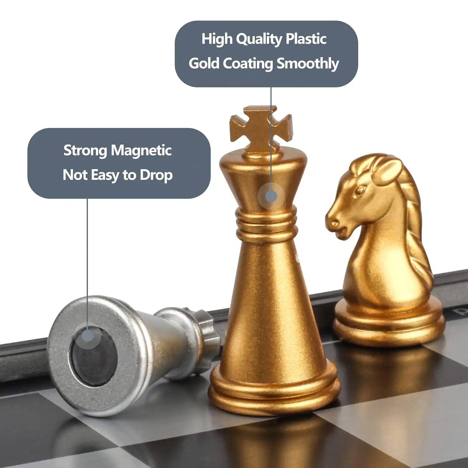 > Magnetic Attraction - Our chess pieces are equipped with magnets, ensuring a secure grip on the board even on bumpy journeys. Enjoy uninterrupted play magnetic chess set on any surface with confidence.