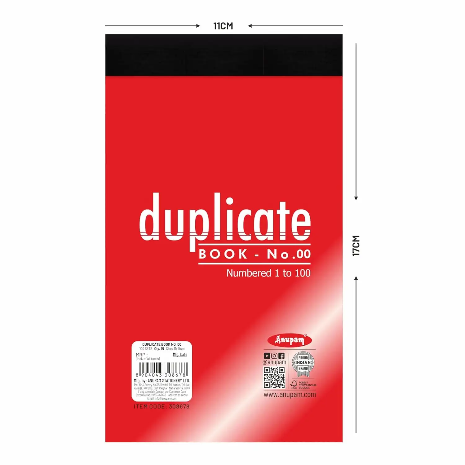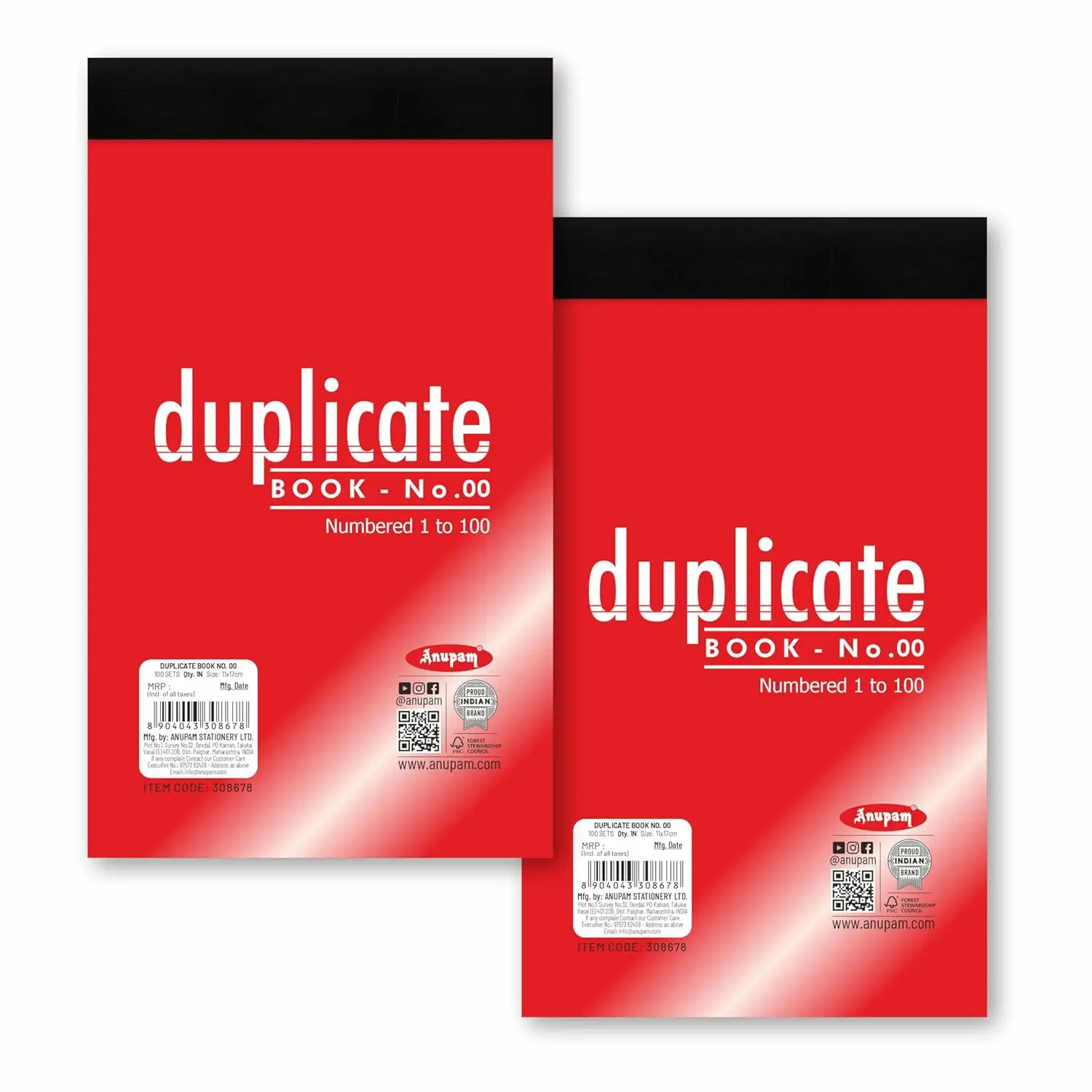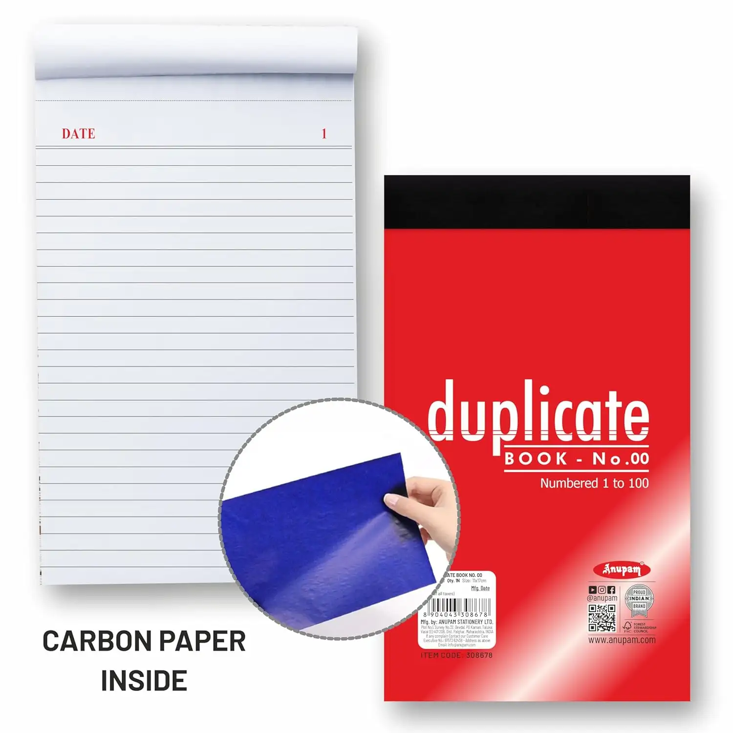 Anupam 11x19 cm Size Duplicate Book with Carbon & Index Ruled Sheets Pad for Replicate, Record, Organize and Work Order Receipt Book (Size : 00, Pack of 2)
