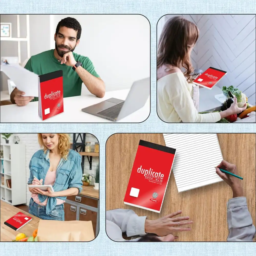 > DURABLE CARDBOARD BACKING : Duplicate book feature a sturdy backing that offers support and stability The billing duplicate book with durable cardboard backing ensures stability and protection, providing a reliable surface for organized record-keeping and note-taking