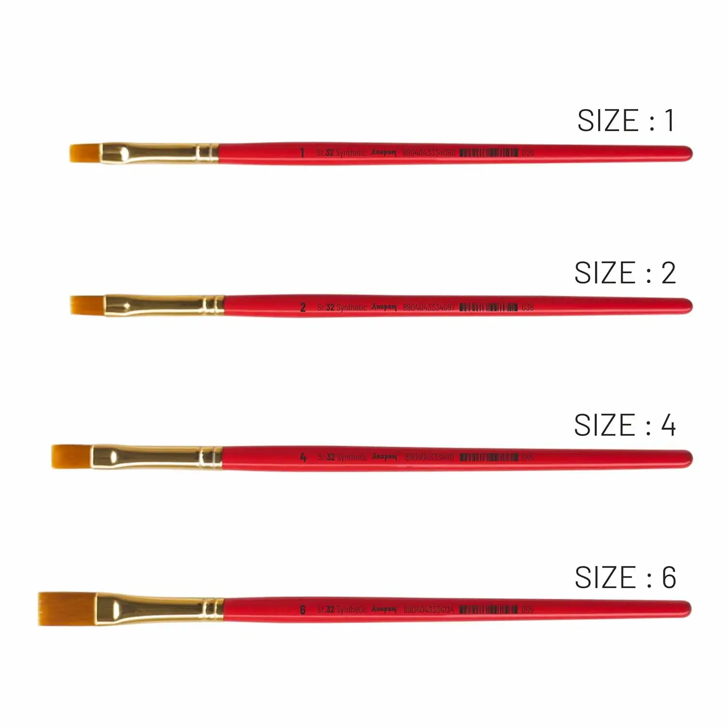 Anupam Flat Synthetic Painting Brush Set of 4pc Short Handle Painting Brush for Watercolor,Acrylic & One Stroke Painting (Sr. 32) | Pack Of 1