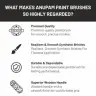 > Balanced Design for Comfortable, Fatigue-Free Use : Each brush in the Anupam Sr. 32 set is crafted with precise weight distribution, offering a comfortable grip that reduces hand fatigue even during long painting sessions. The balanced feel enhances control, allowing for effortless brush strokes and detailed work. The ergonomic design supports a comfortable painting experience, making these brushes ideal for extensive projects, whether you’re working on canvas, body art, or mixed media. The set provides everything you need to paint comfortably and precisely, helping you focus fully on your creative process.