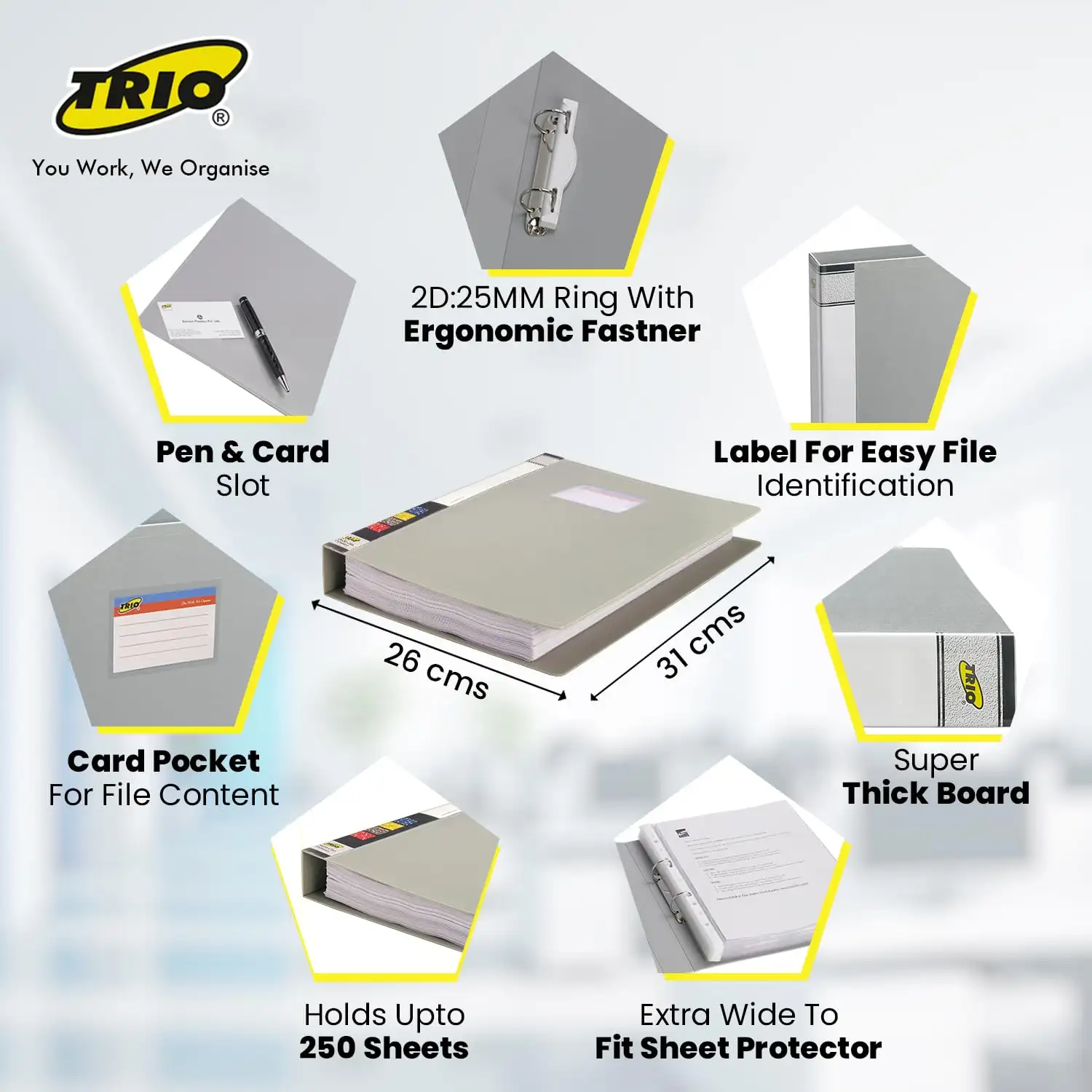 > DURABLE & RUST-FREE: The TRIO Ring Binder features a rust-free 25 mm Chromium Fitted Ring and aluminum rivets for long-lasting durability.