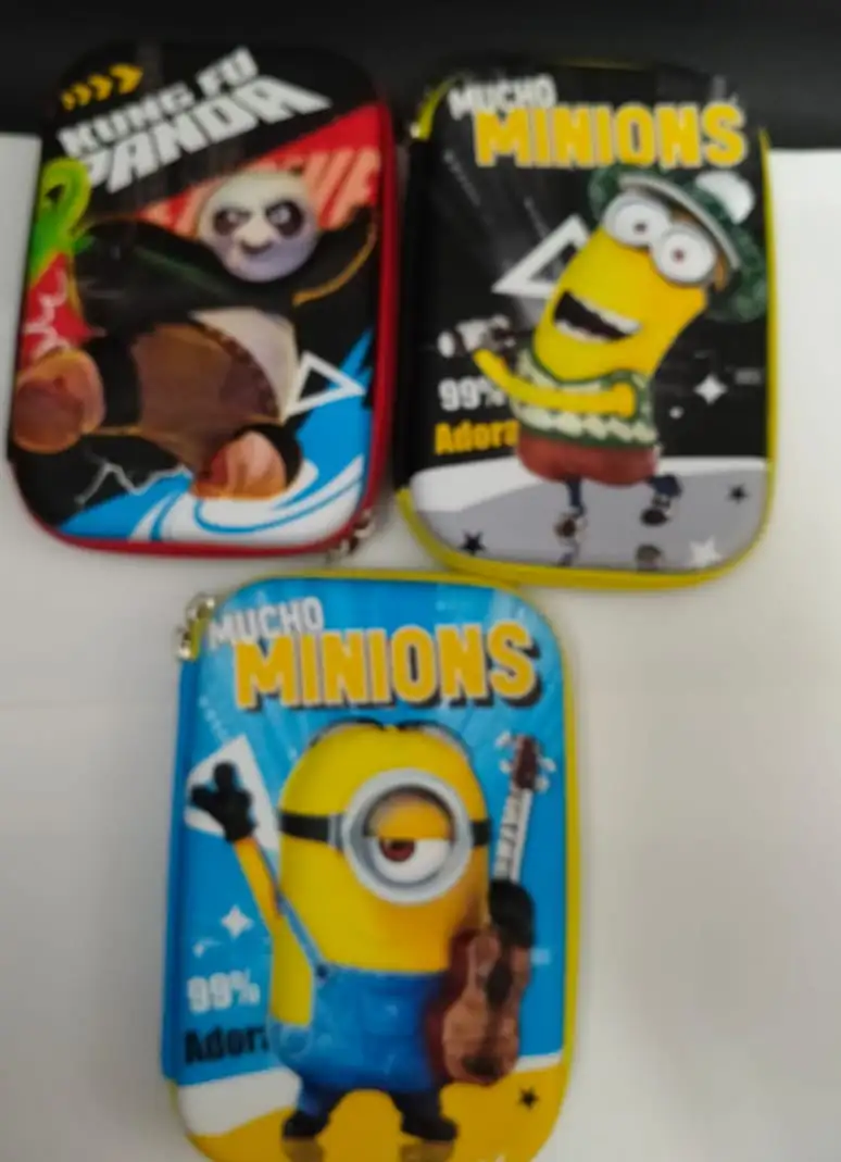 Big Size 3D Pencil Pouch for Kids , Large Capacity Eva Panda & Minions Pencil Box Organizer for Boys, Jumbo Stationery Hardtop Storage Case for School Students (Pack Of 1)