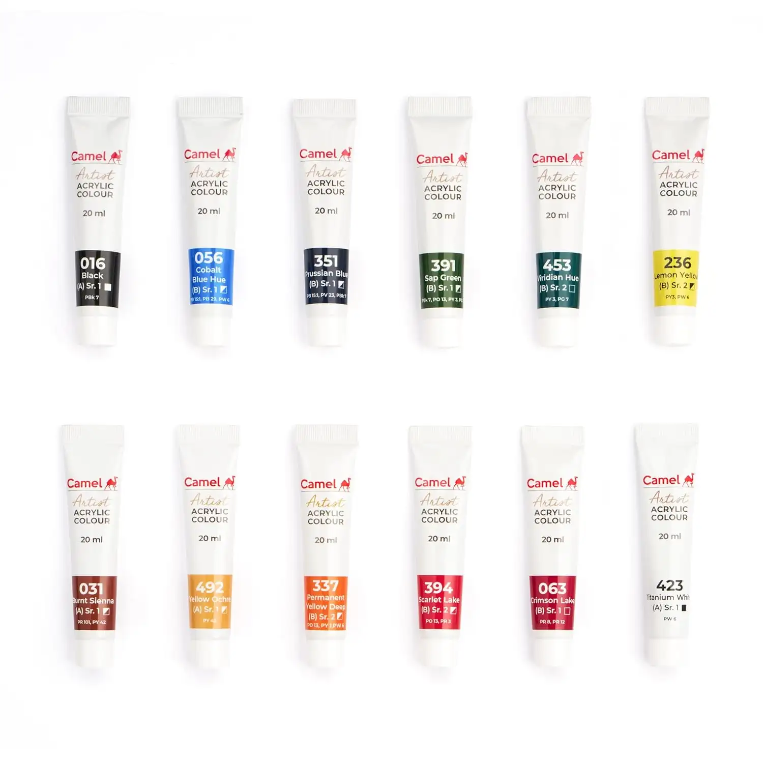 Camel Acrylic Color Box-20Ml Tubes,12 Shades,Multicolour | Pack Of 1