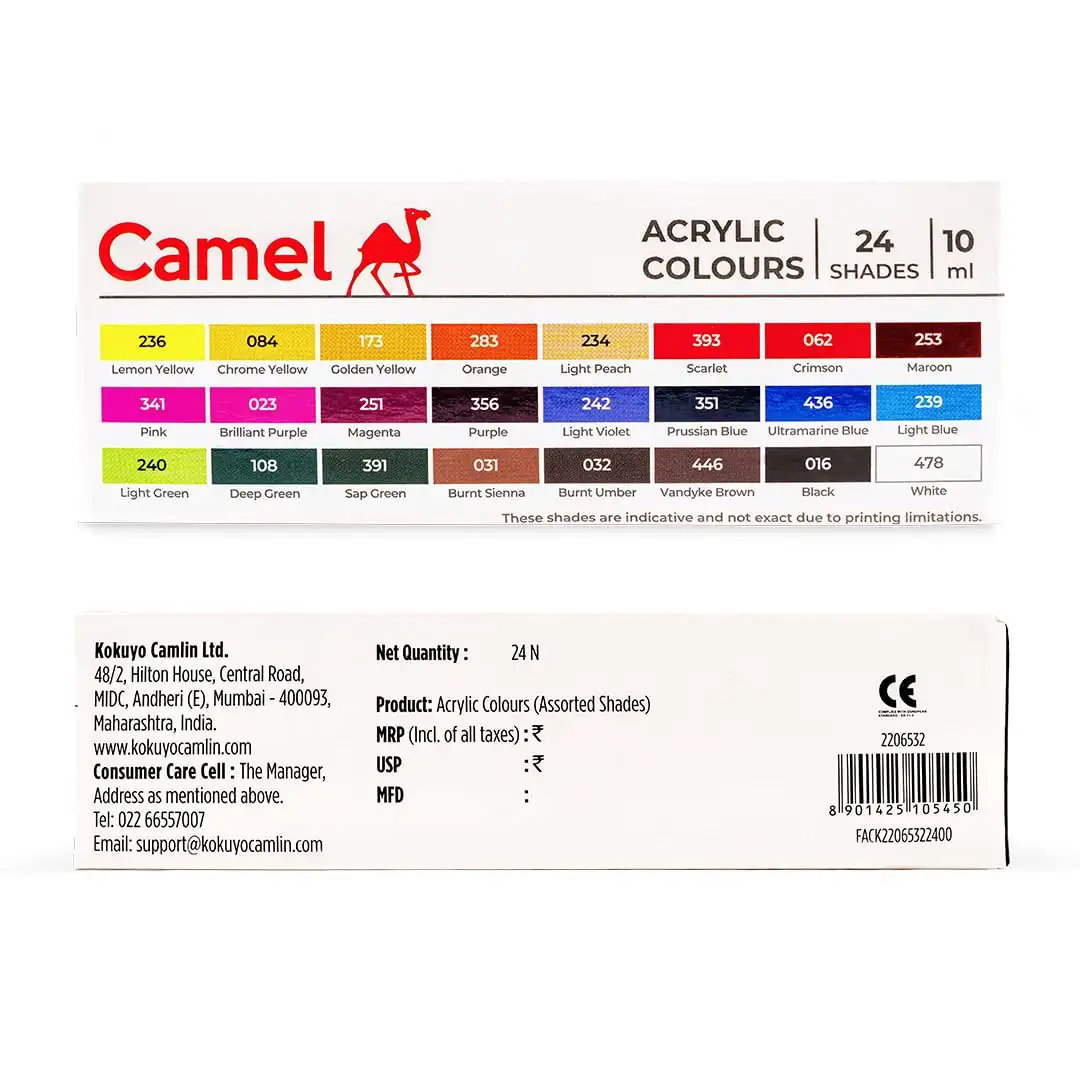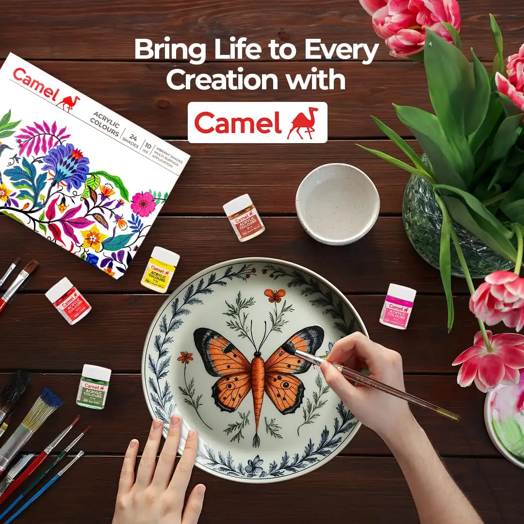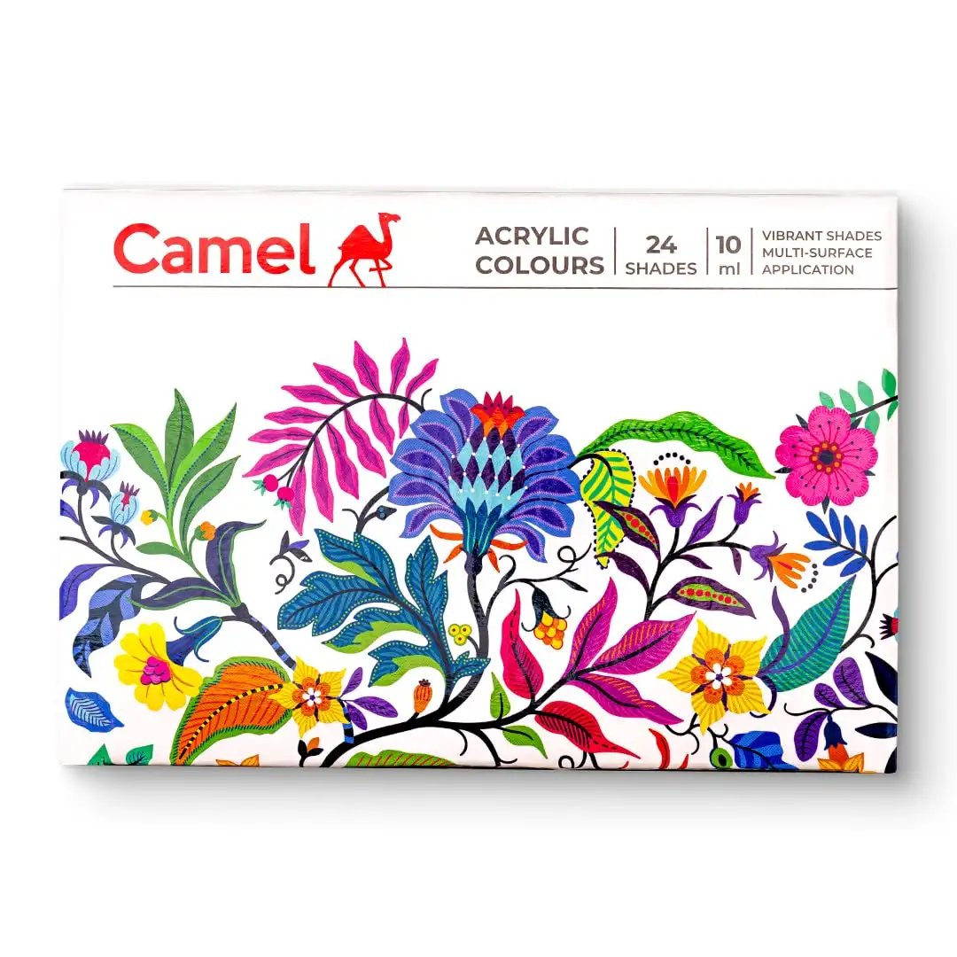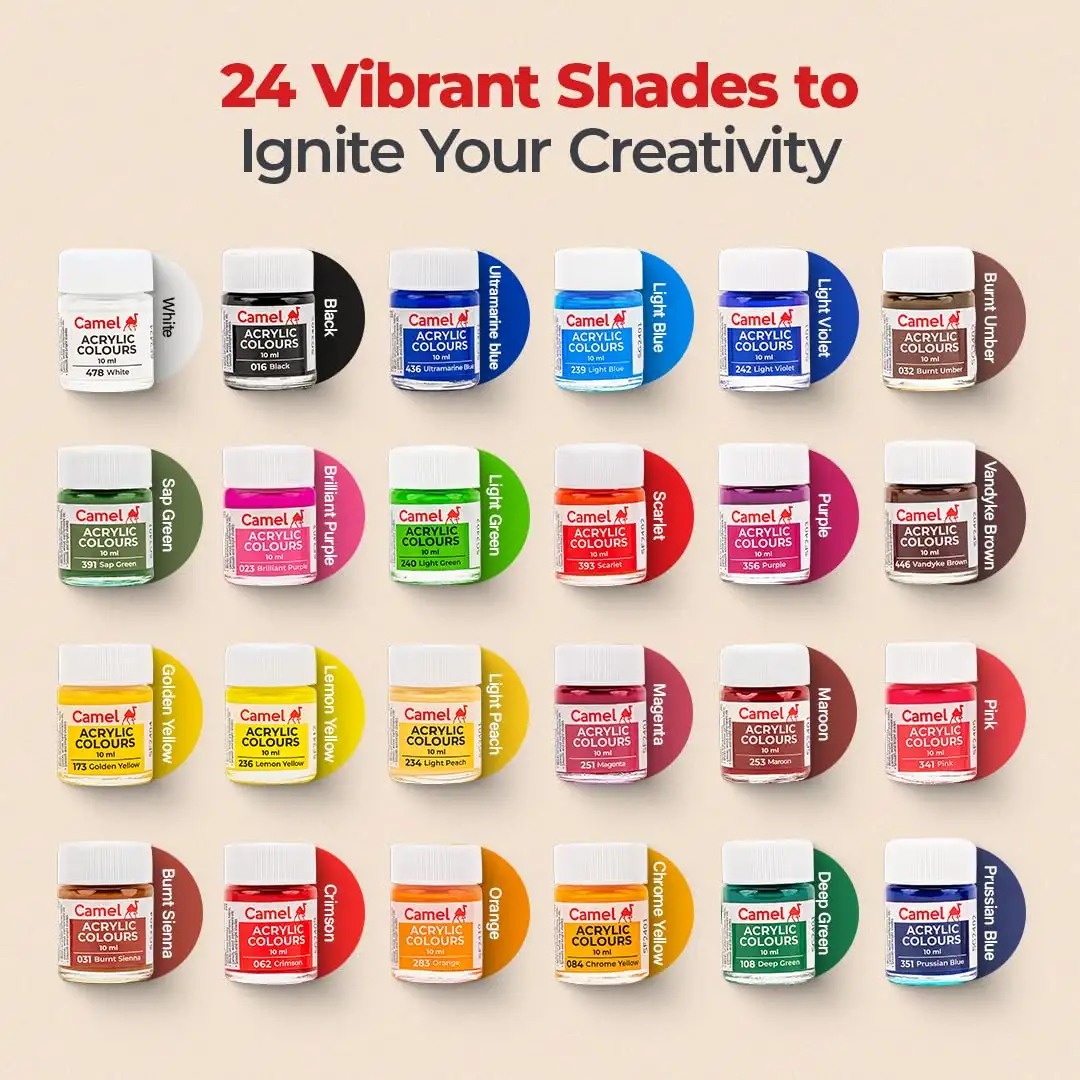 Camel Acrylic Ultra Colour – 24 Rich Shades (10ml each) | Multi-Surface DIY Paints | Vibrant & Permanent Colors | Suitable on Canvas, Wood, Fabric, Paper and Ceramics | Pack OF 1