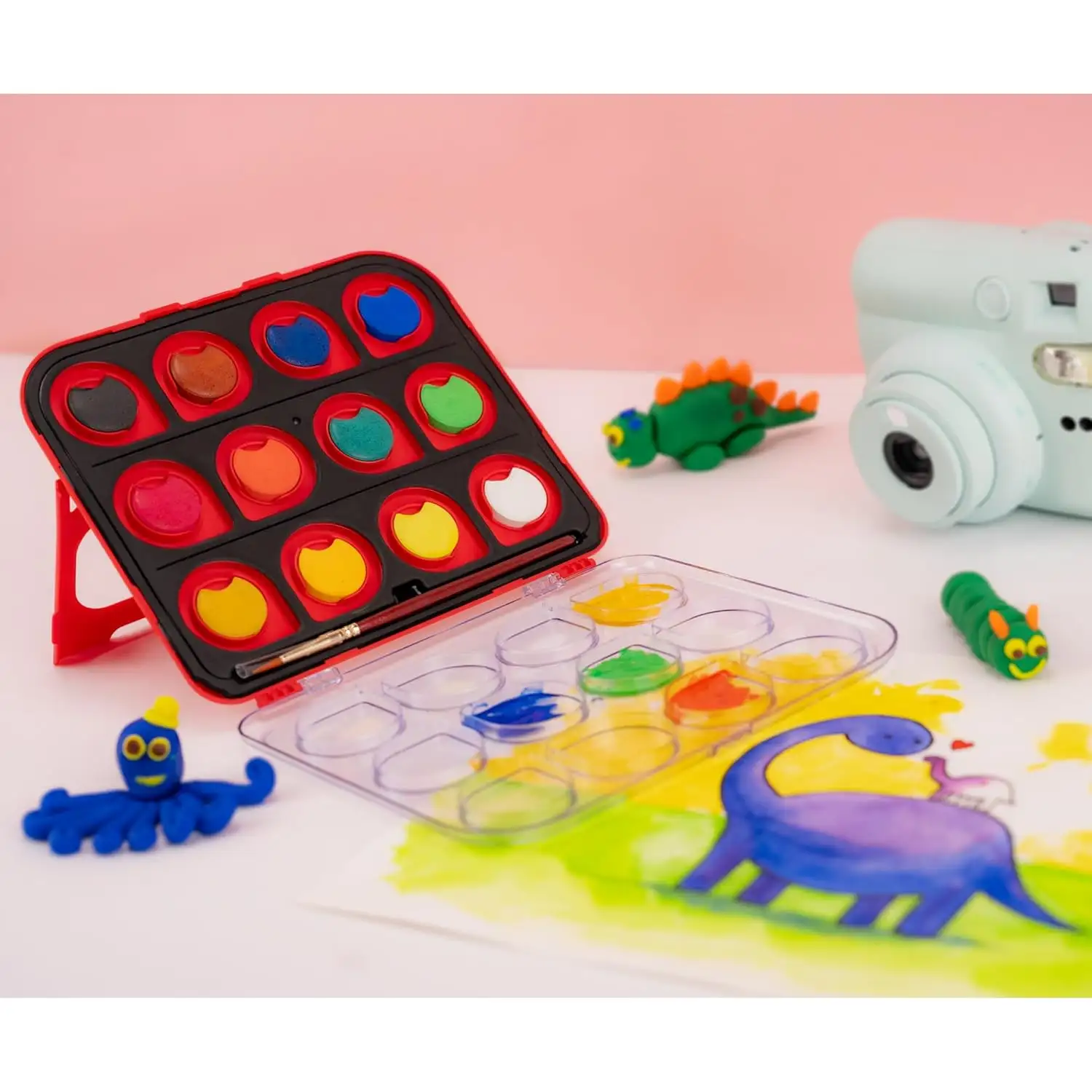 > 12 Vibrant Shades: Includes a perfect mix of light and dark colors in crescent-shaped cakes for versatile painting.
