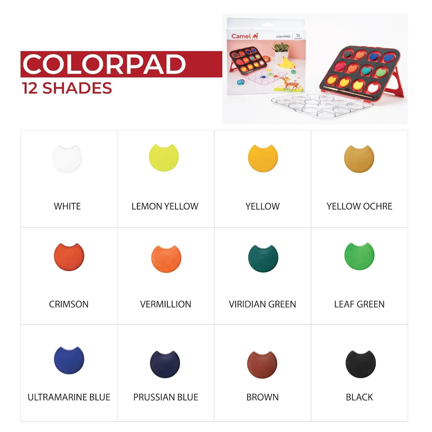 Camel ColorPad Watercolor Cake with Paint Brush | 12 Shade Set | Vibrant Colors | Portable Design for Outdoor Art & Competitions | Ideal for Students| Pack Of 1