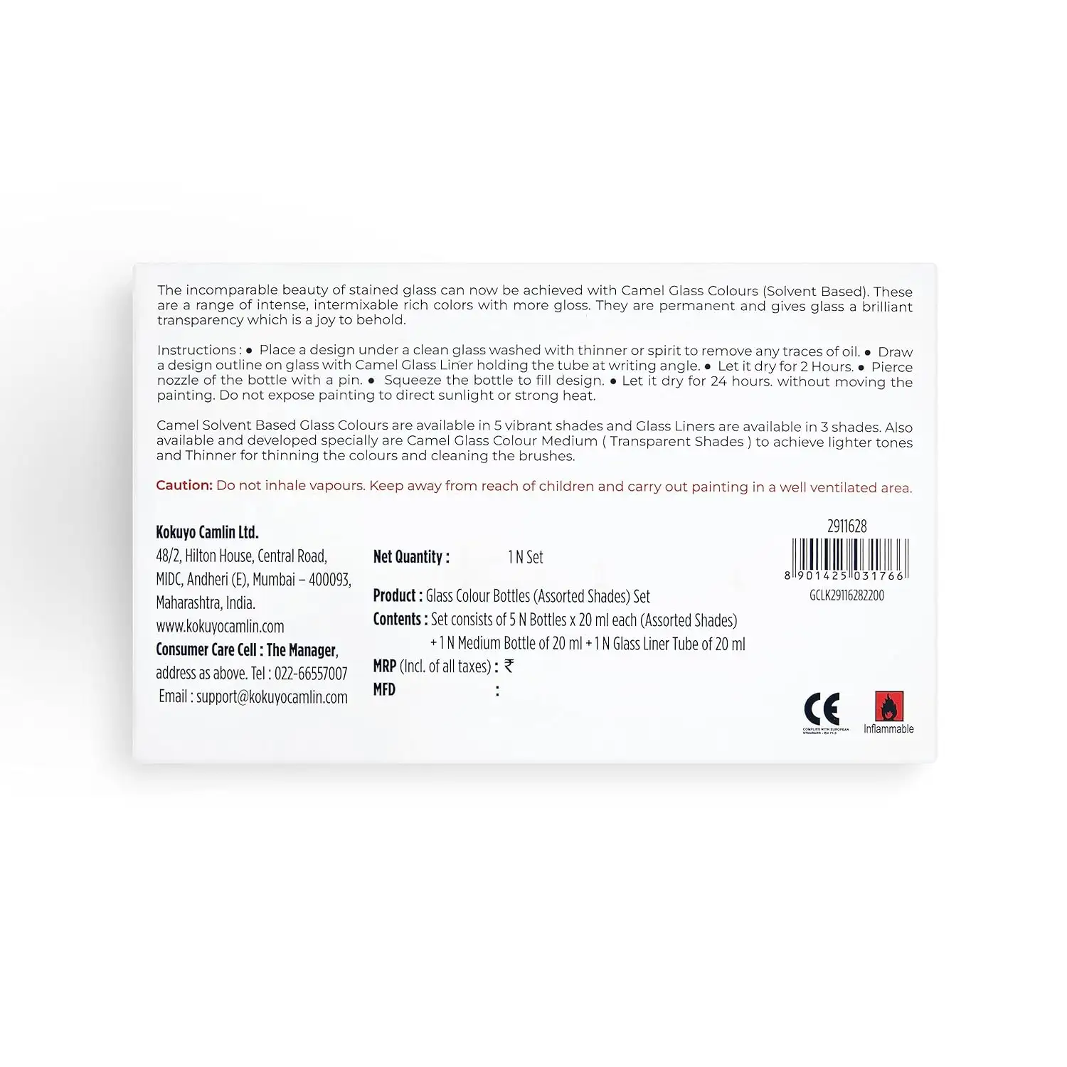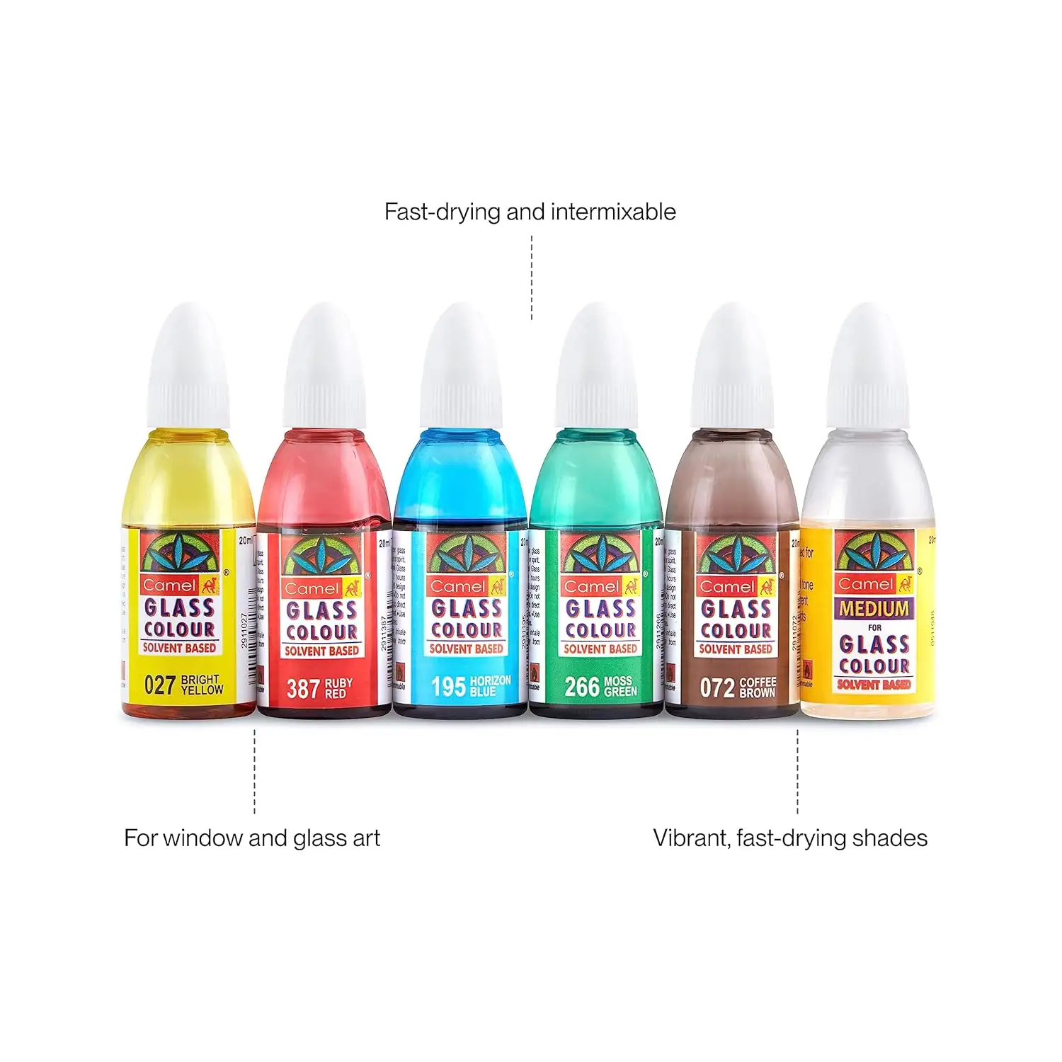 Camel Solvent Based Glass Color - 20ml | 5 Shades | Pack Of 1