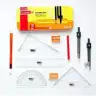 > 10 Essential Drawing Tools per Box – Includes compass, divider, ruler, set squares, protractor, mechanical pencil, eraser, sharpener, and additional lead pencil.