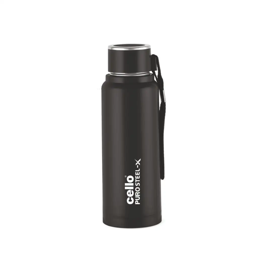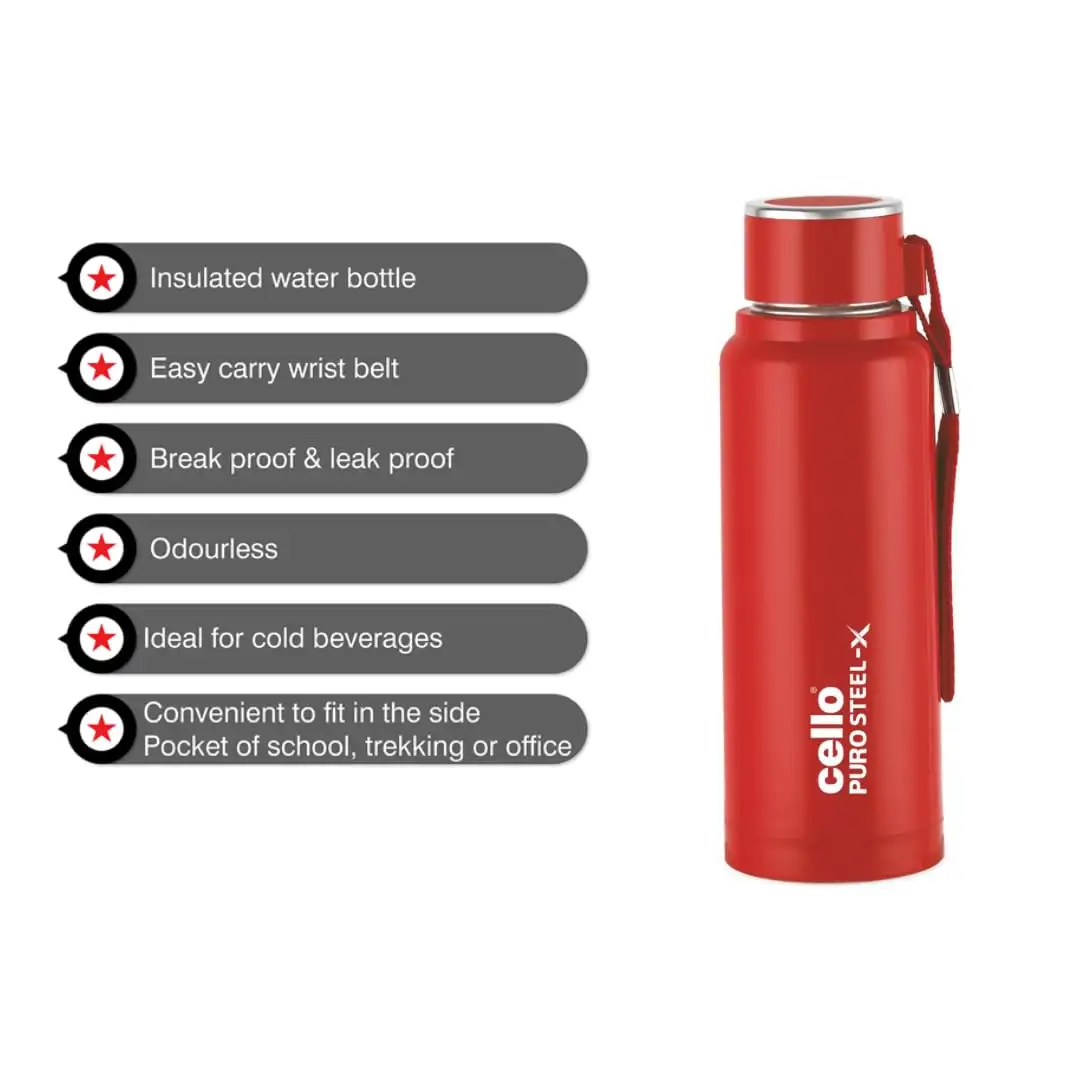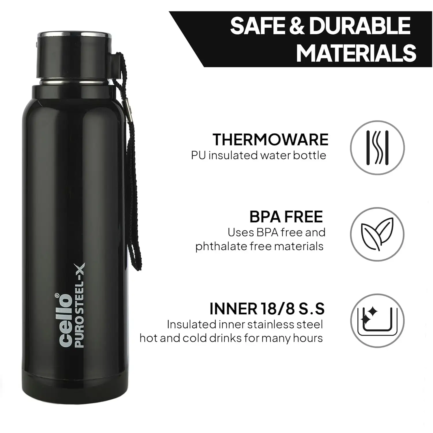 Cello Puro Steel-X Benz PU Insulated Water Bottle 410ml, | BPA Free, Leakproof, ISI Certified | Hot & Cold Bottle for Gym, Office, College, Travel, Outdoor Sports & Yoga with Carry Loop | P