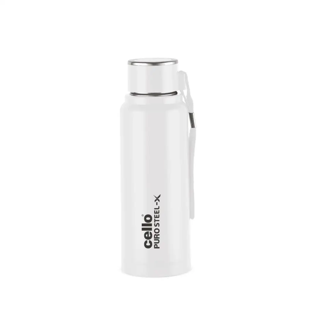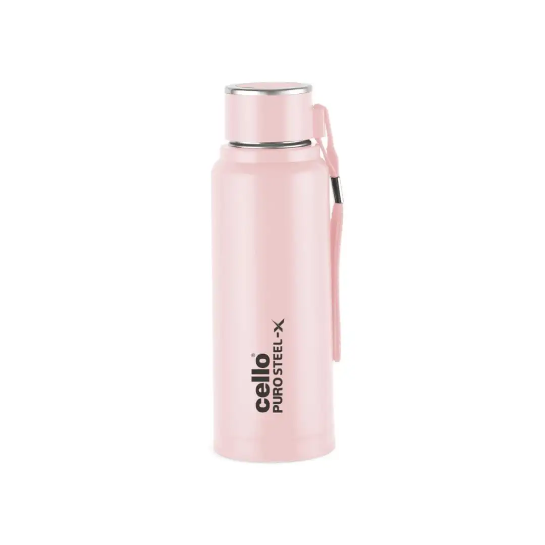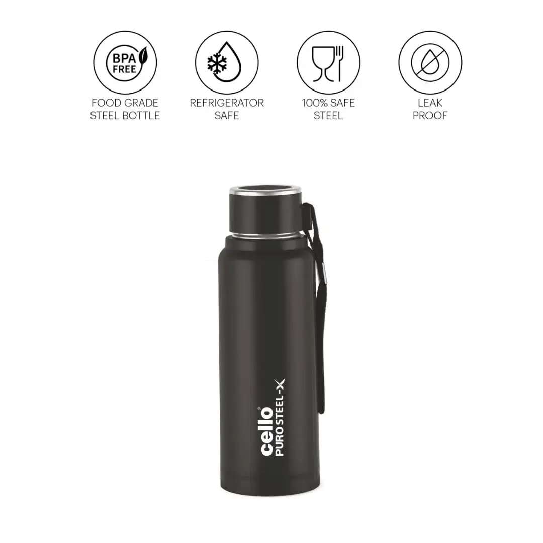Cello Puro Steel-X Benz PU Insulated Water Bottle 410ml, | BPA Free, Leakproof, ISI Certified | Hot & Cold Bottle for Gym, Office, College, Travel, Outdoor Sports & Yoga with Carry Loop | P