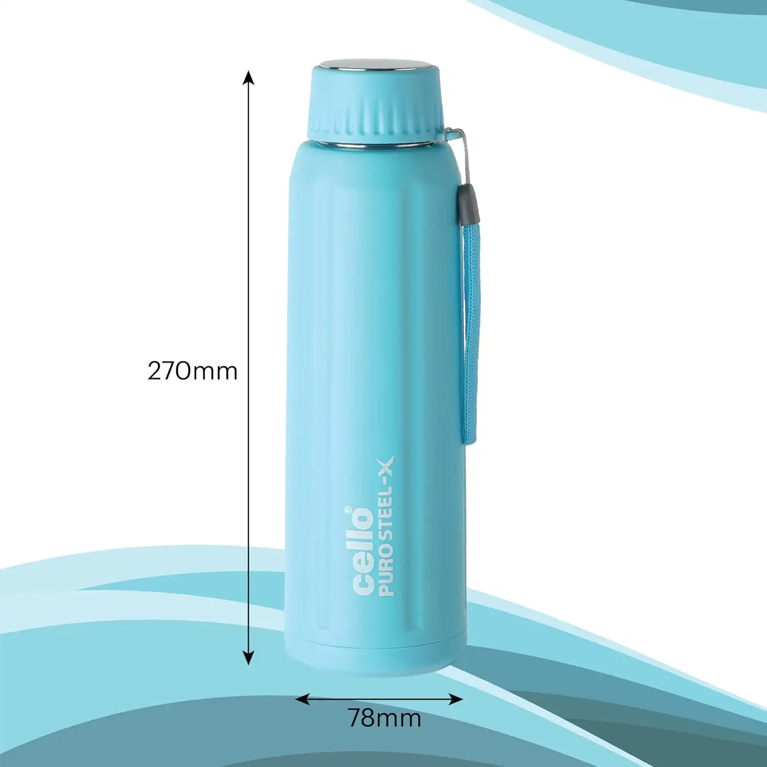 Cello Puro Steel X Spike 600 Water Bottle | Leak Proof & Refrigerator Safe | PU Insulated | Wide Mouth Opening | Keeps Content Cold for Long Hours | 520ml, | Pack Of 1