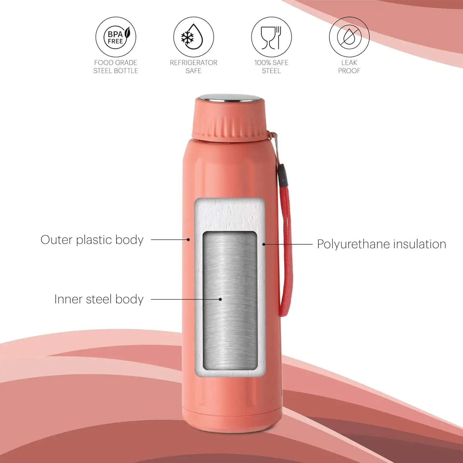 > No Heat Retention: Inner steel layer with outer plastic for storing cold beverages and keeping them cold for a few hours only, Please note that this bottle does not have heat retention capability and is not suitable to retain temperature of hot beverages