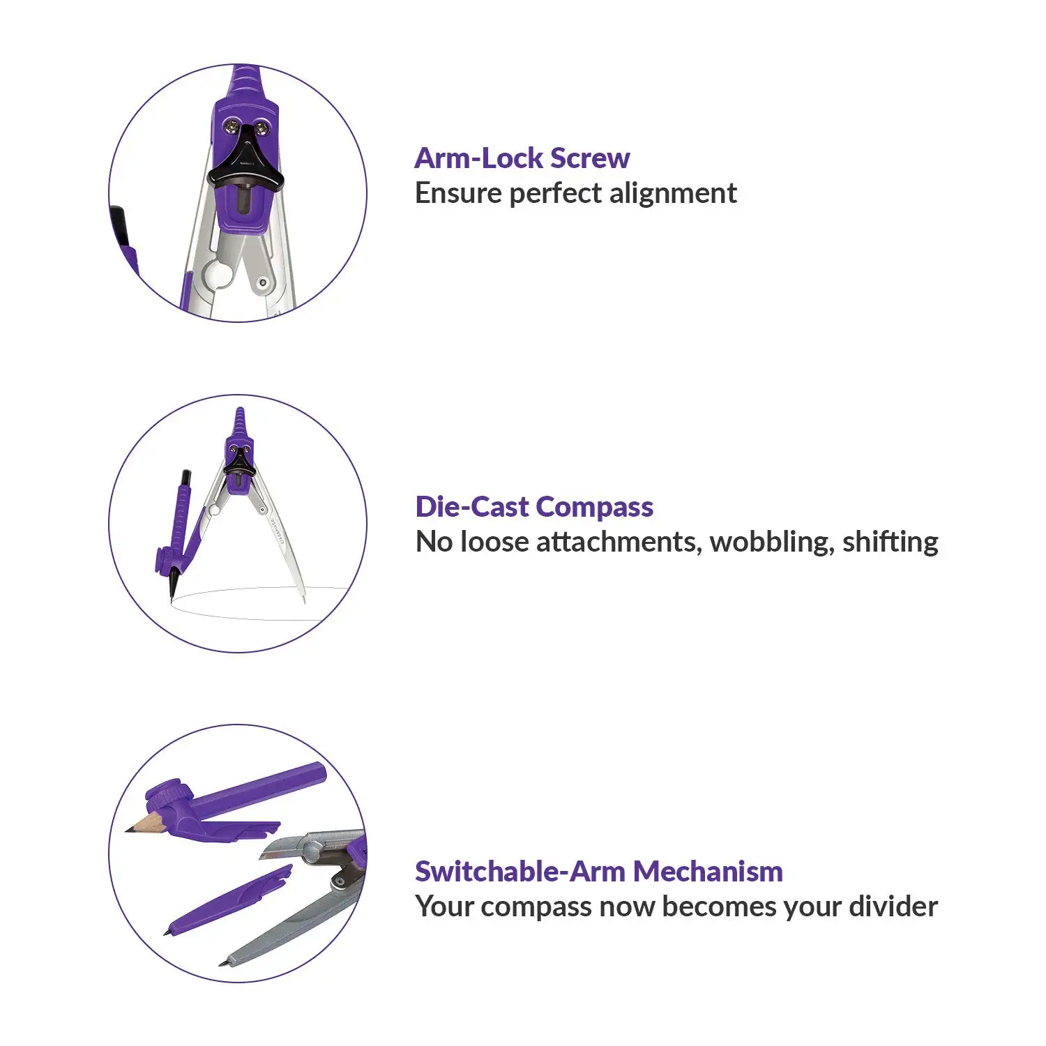 > Versatile compass cum divider for all geometric needs.