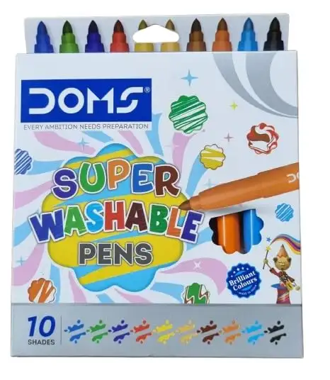 > Washable Pens: Includes 10 shades that are easy to wash off, making them perfect for kids and mess-free creativity.