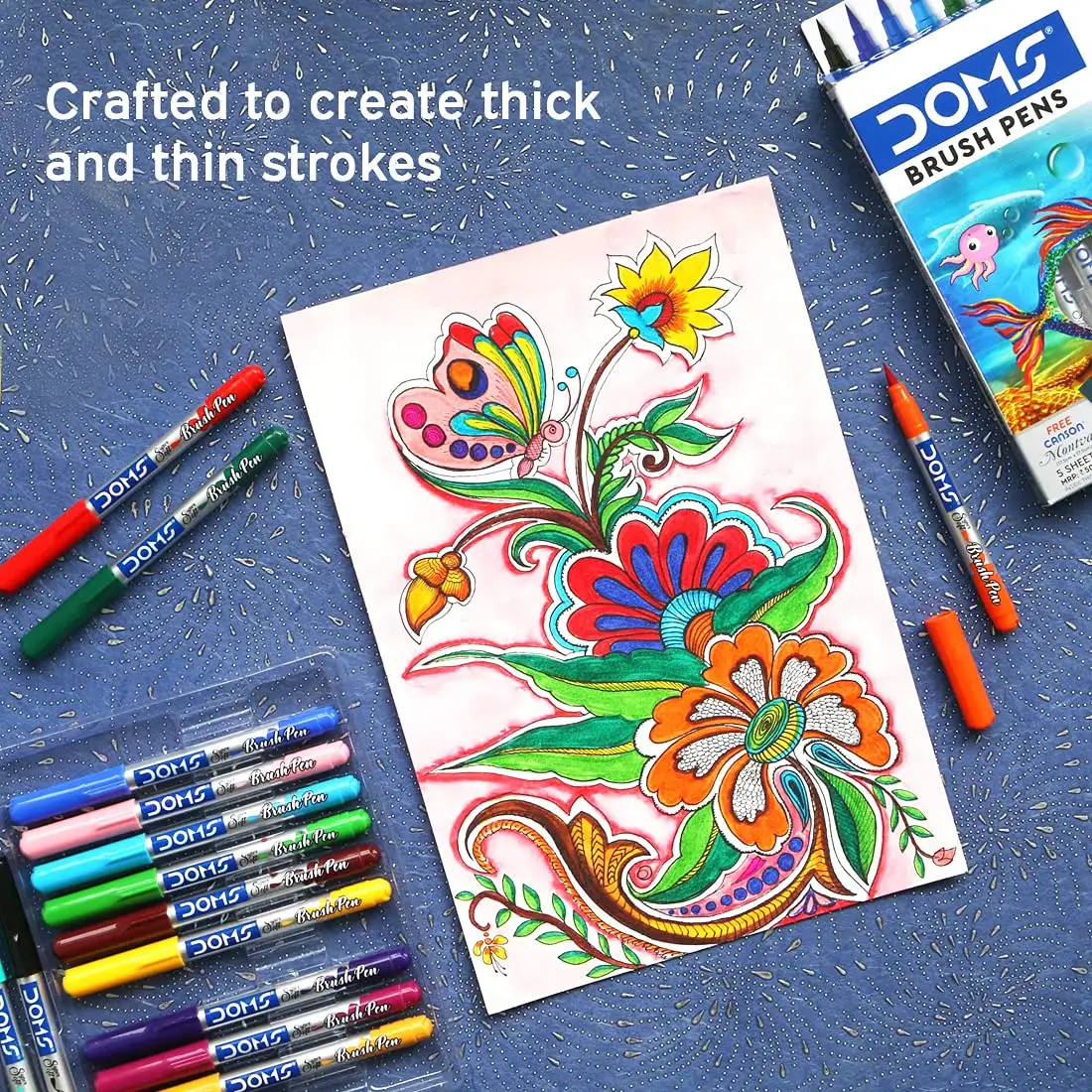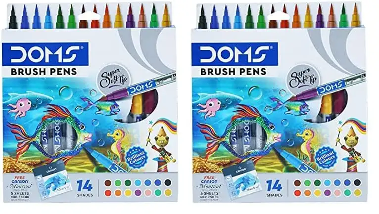 Doms 14 Shades Brush Pen Box Pack | Super Soft Tip With Brilliant Colors | Water Based Ink Which Gives Water Color Effect | Free Canson Montval 5 Sheets Inside | Pack of 1