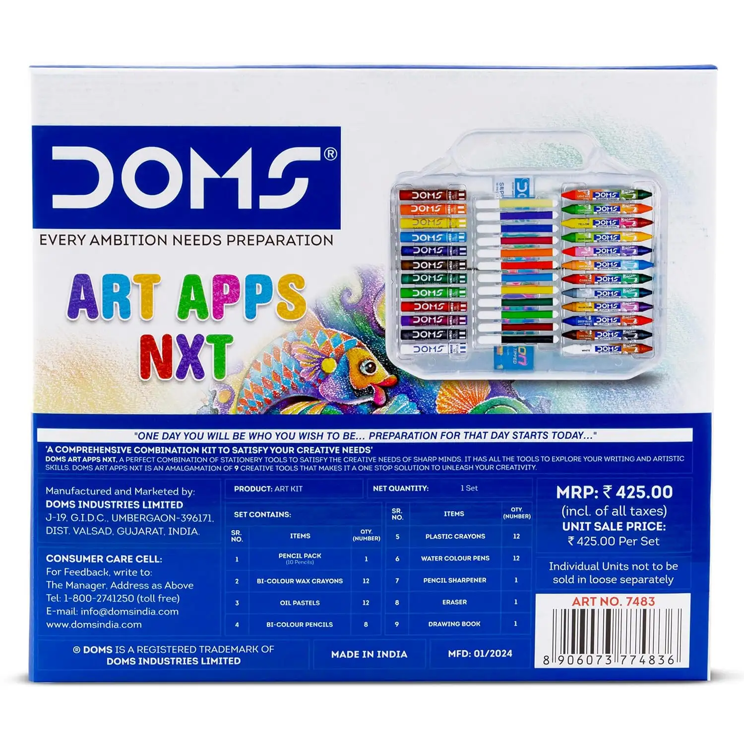 Doms Art Apps Nxt Kit With Plastic Carry Case | Perfect Value Pack | Kit For School Essentials | Gifting Range For Kids | Combination of 9 Stationery Items -Pack Of 1