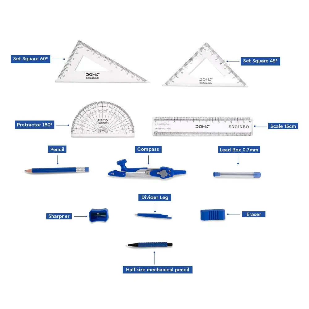 DOMS ENGINEO GEOMETRY BOX AND MATHEMATICAL DRAWING INSTRUMENT (2 IN 1 CONVERTIBLE LEG JOINT) | Pack Of 1