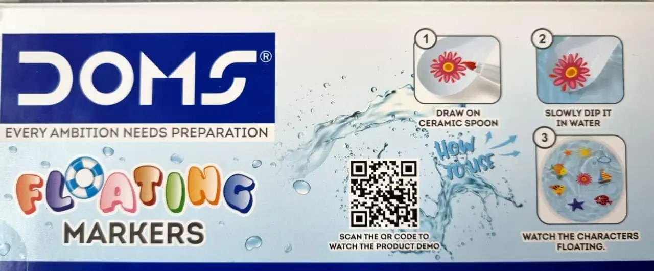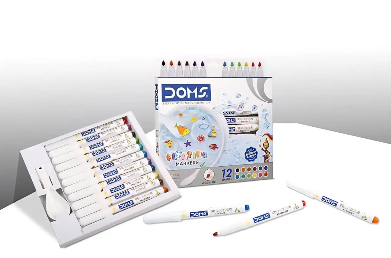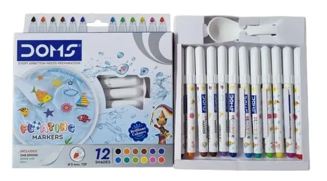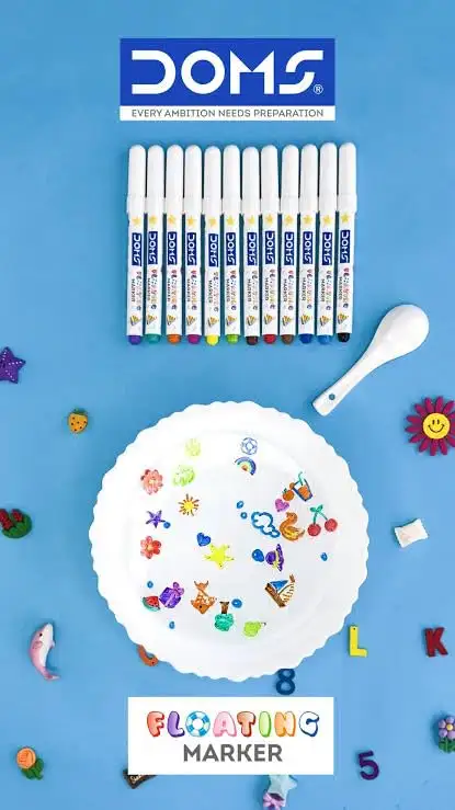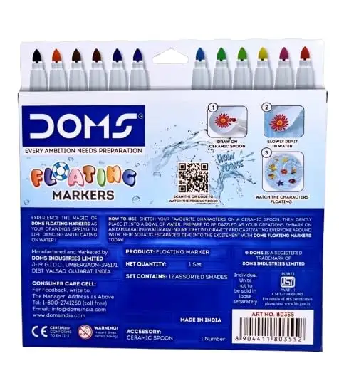 Doms Floating Markers 12 Assorted Shades| 5mm Tip| Includes 1 Ceramic Spoon For Unlimited Fun| Draw On Ceramic Spoon, Slowly Dip It In Water & Watch The Characters Floating | Pack Of 1