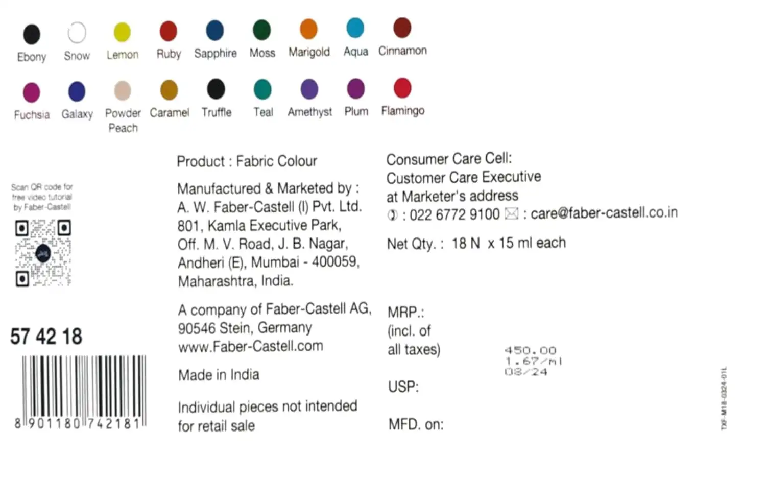 Faber-Castell Creative Studio TEXTURA 15ML Set of 18 | Pack Of 1