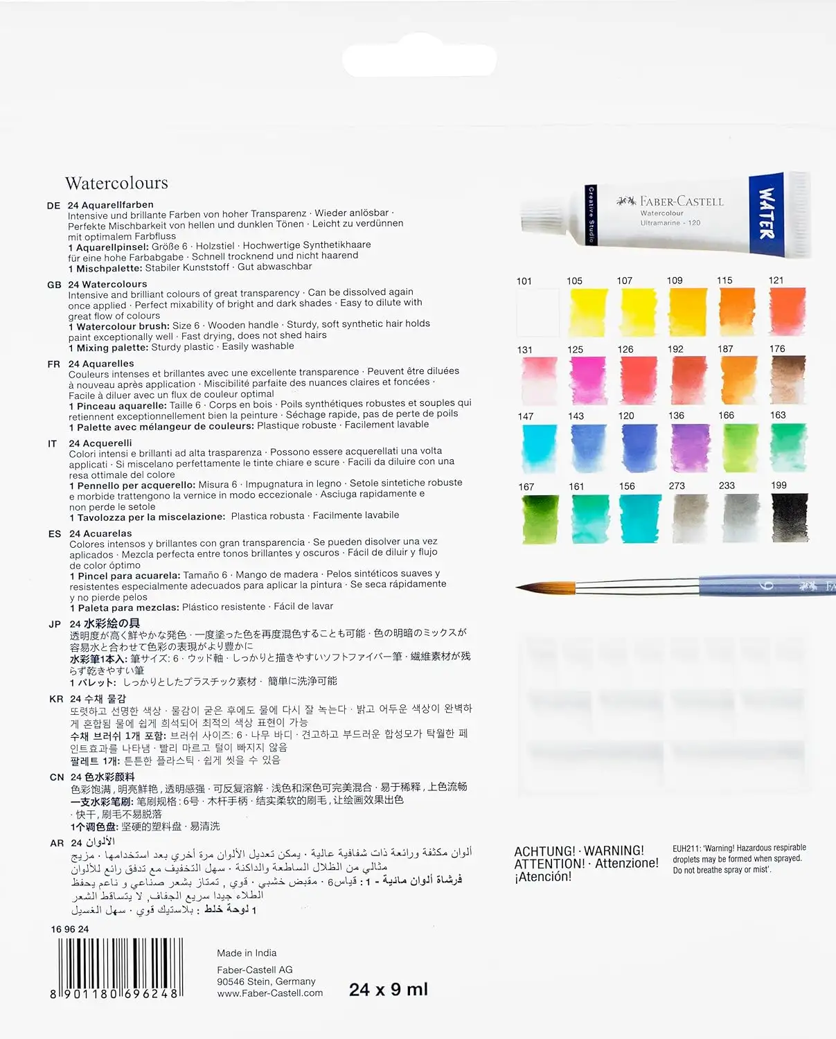 Faber-Castell Creative Studio Watercolour Paint Set – 24 x 9ml Tubes | Artist Grade Watercolours for Students & Beginners | Painting Colour Set for Paper & Canvas | Pack Of 1