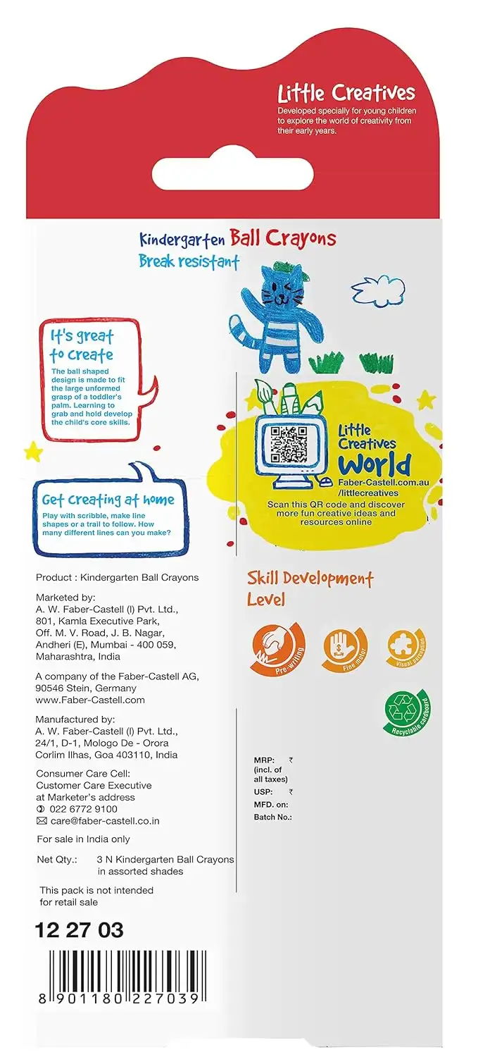 > The early age crayon range is a scientific and age appropriate tool which helps develop the child's core skills gradually but significantly while also making them have fun! Made to fit the large unformed grasp of a toddler's palm