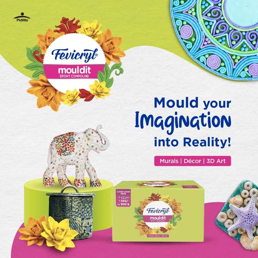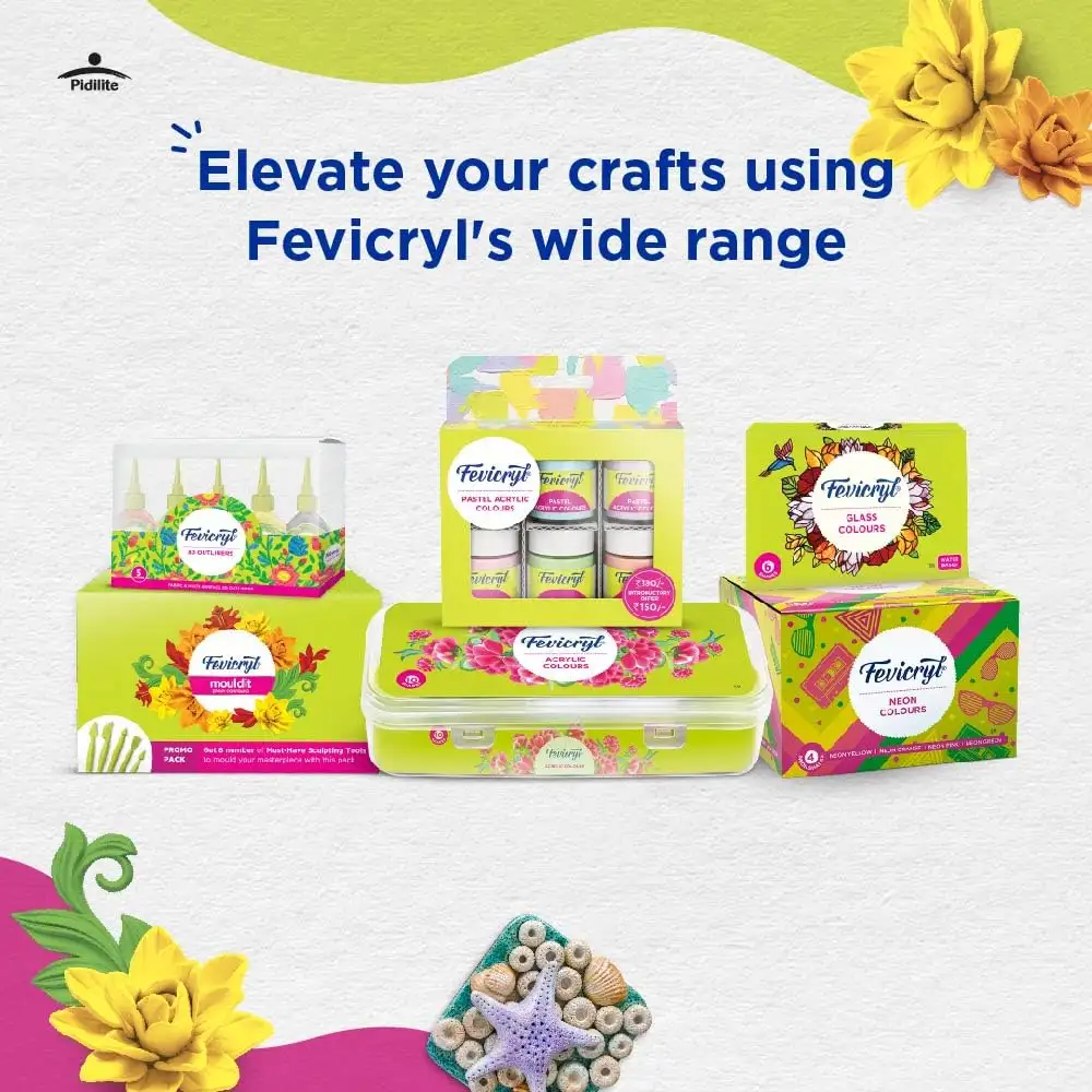 > Fuel your imagination: Fevicryl Mould It can help you mould your imagination into reality and create shapes and 3D works of all art like wall hangings, vases, murals, etc.