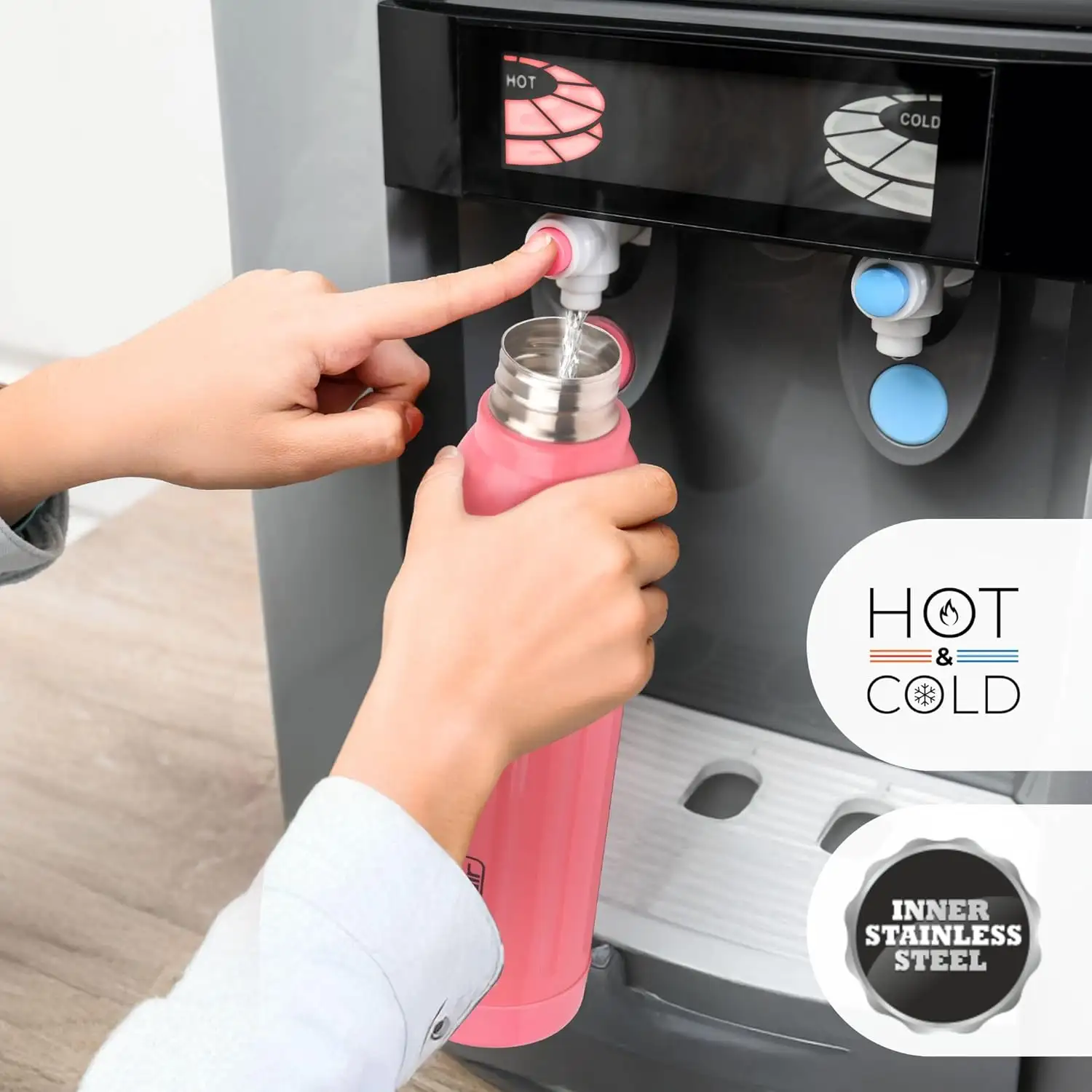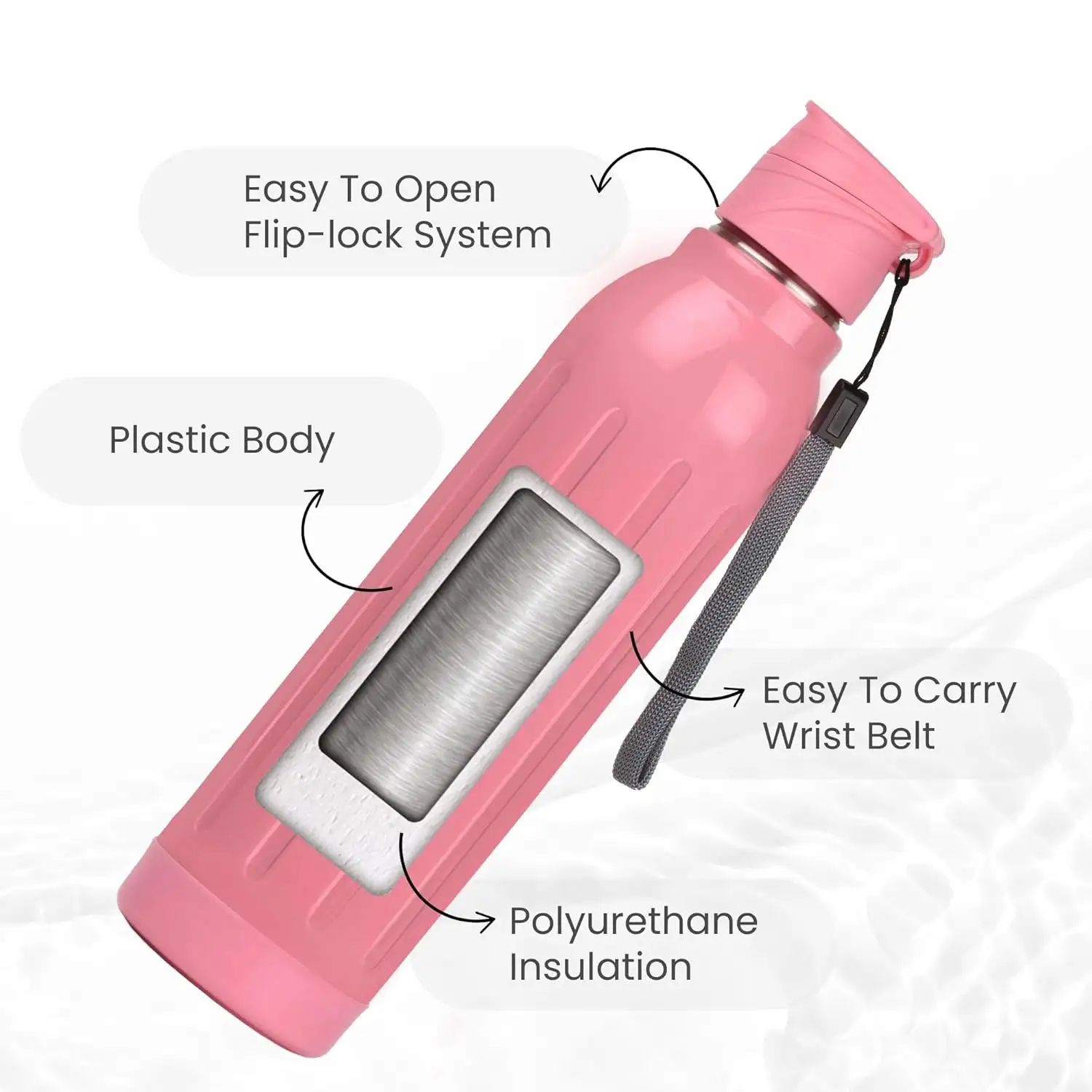 > Food Safe & Odourless:- Made with food-grade inner steel, this bottle is non-toxic, safe, and preserves beverage flavor. Durable Dual Build: Hygienic stainless steel interior with a tough plastic exterior for lasting use