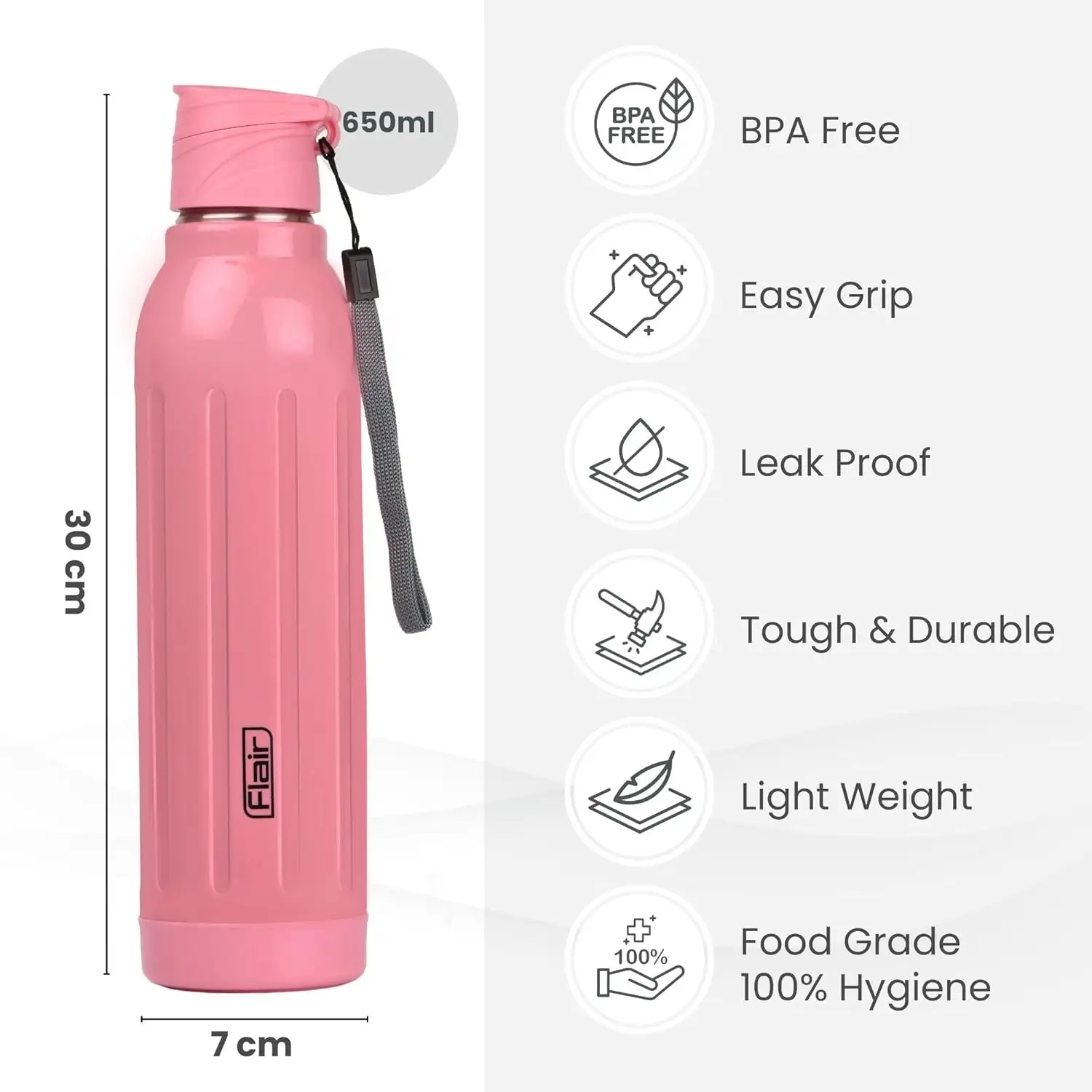 > Leak-Proof & Travel-Friendly:- The secure sealing lid ensures no leaks, making it perfect for travel. Includes a convenient carrying strap for easy portability, ideal for on-the-go hydration and daily use.