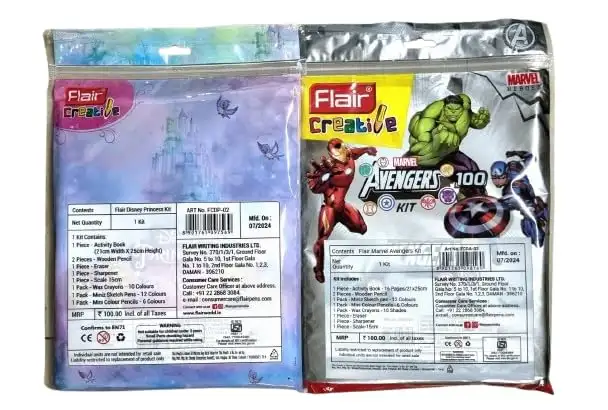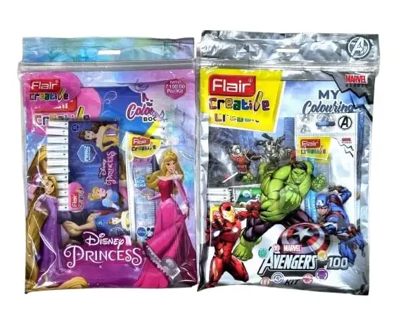 > Flair Creative Marvel Avengers + Princess Stationery & Art Material Kit| A Perfect Birthday Gift For Children Boys & Girls| Includes 8x1=8 Items in 1 Packs