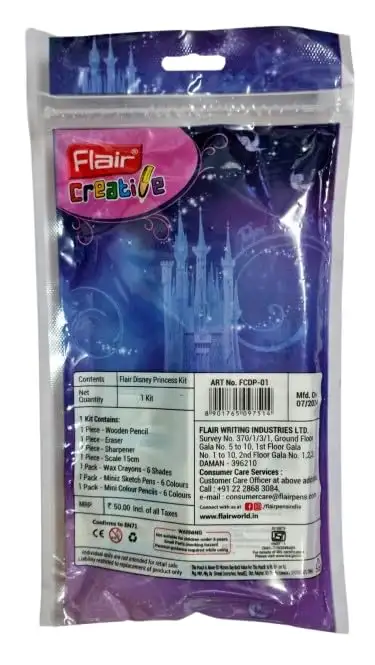 Flair Creative Princess Stationery Art Kit Pack of 2| Includes Wooden Pencil, Eraser, Sharpner, Scale, Wax Crayons 6 Shades, Mini Sketch Pen 6 Shades, Mini Colour Pencils 6 Colours