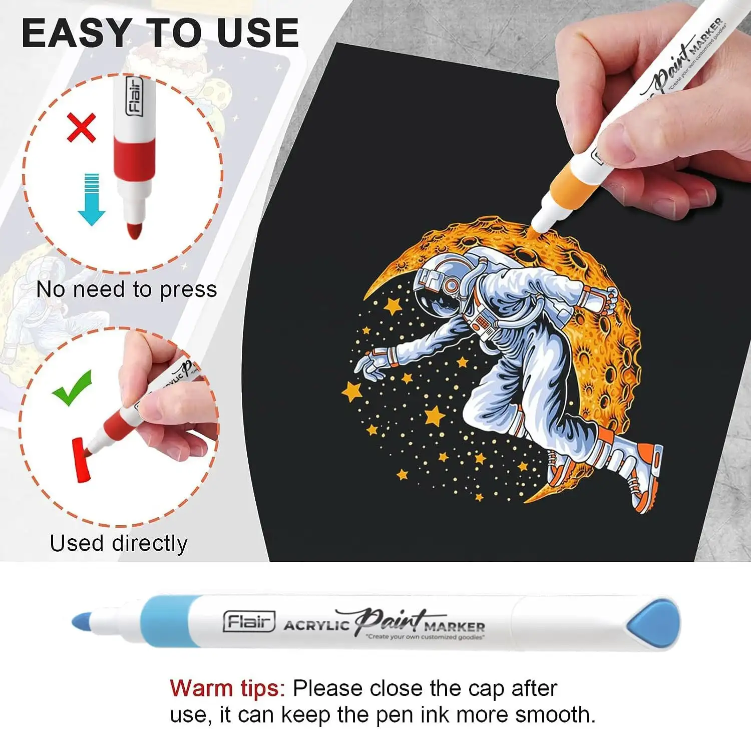 > Easy To Ues : Say Goodbye To The Hassle Of Shaking Your Markers Before Each Use. Our Paint Pens Acrylic Markers Are Designed To Be Ready-To-Go Straight Out Of The Cap. These Pens With New Design, Very Easy To Apply And No Need To Shake And Press Tips Before Using, You Only Need To Open The Cap To Use Pen. Warm Tip: Please Close The Cap After Use, It Can Keep The Pen Ink More Smooth.