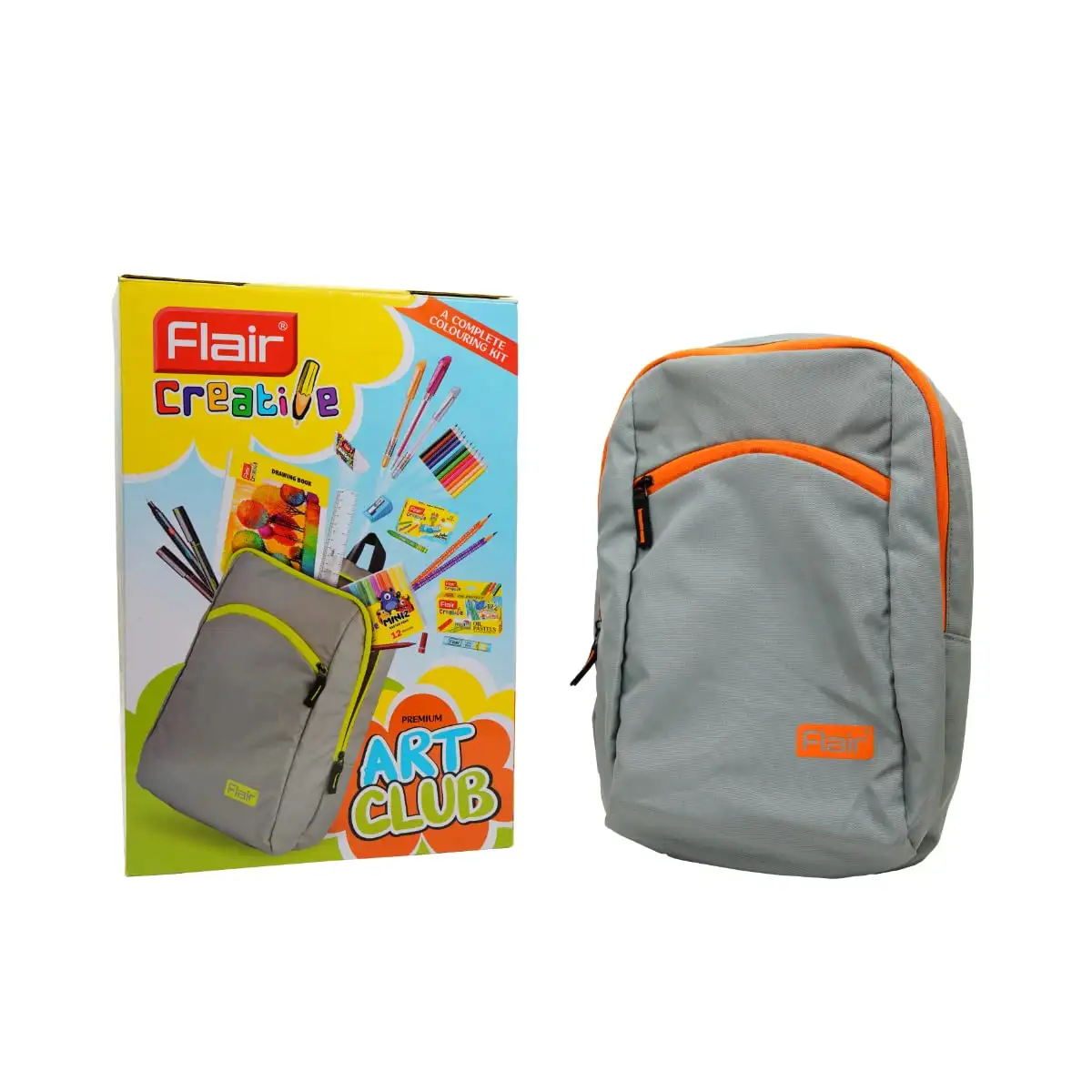FLAIR Creative Series Art Club Combination Smart Kit | With Free Zipper Bag | Non-Toxic & Safe for Childrens | A Complete Coloring Kit | 12 Products & 17 Units, Body Color of Bag May Vary -