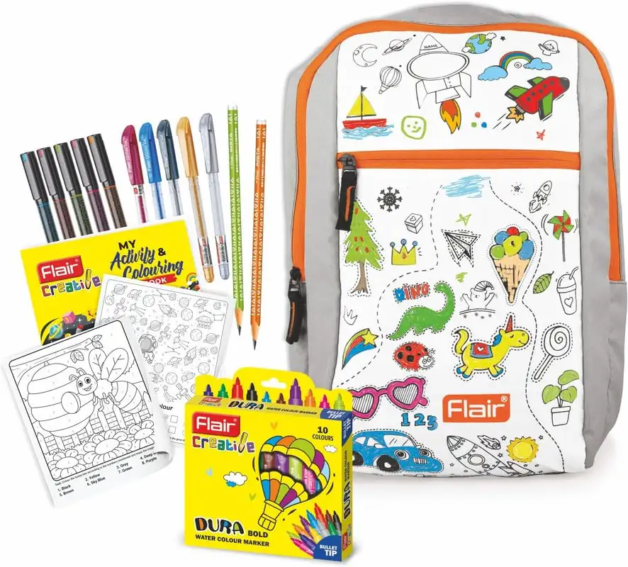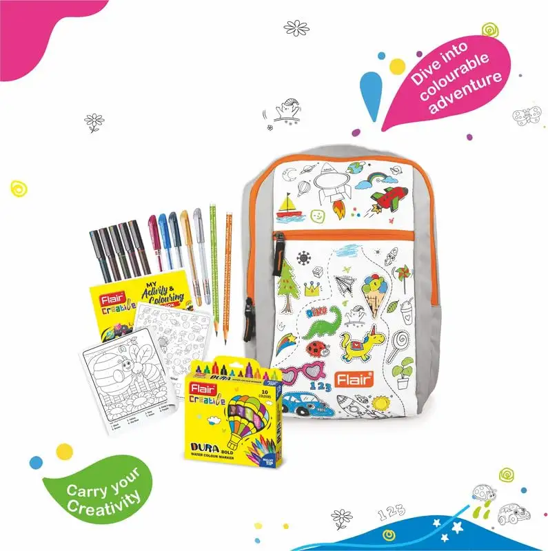 FLAIR Creative Series Splash Art Smart Kit | School Stationery Kit, Ideal for Kids Gifting | Use for Writing, Colouring, Drawing & Crafting | DIY Colouring Bag Included - Color May Vary- Pack