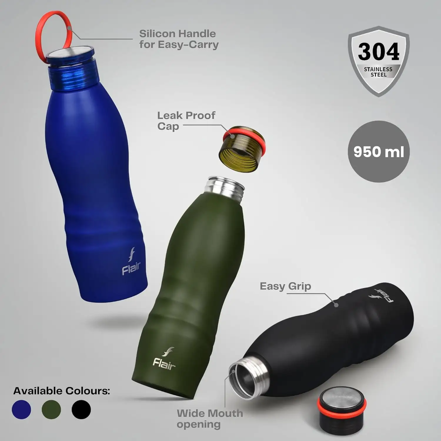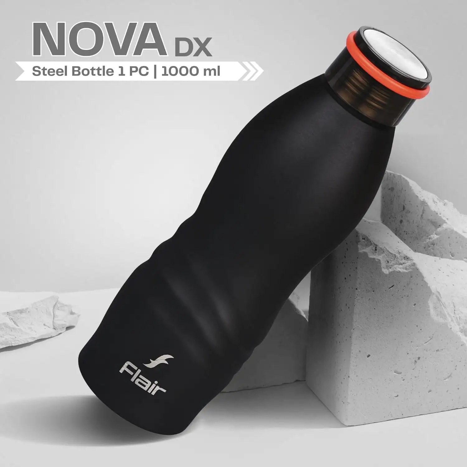 FLAIR Nova Dx 1000 ml |Wide Mouth & Easy to Open | 304 Stainless Steel | Water Bottle For Office Home | Steel Water Bottle For Kids School | Office Water Bottle For Women Men | Pack Of 1