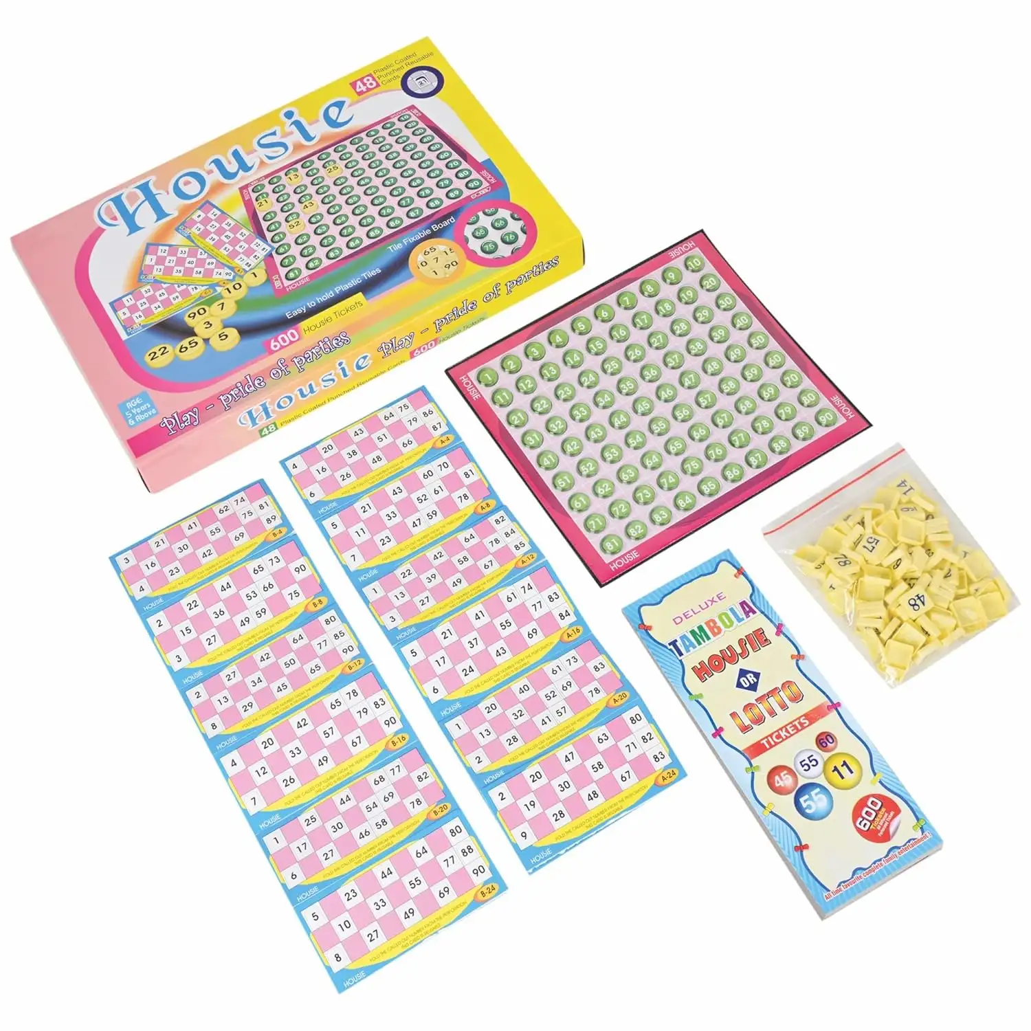 Housie Board Game Set, 48 Cards, 600 Tickets, Ages 5+ | Pack of 1