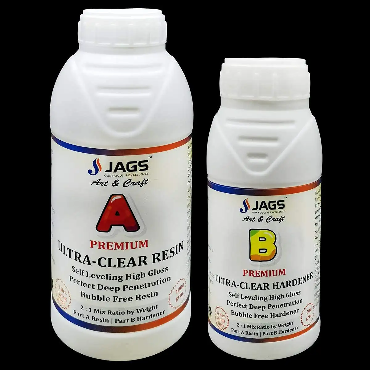 JAGS Ultra-Clear crystal clear, Bubble free, Resin & Hardmer, Non yellowing Resin 500Gms Hardener 250Gms | Pack Of 1