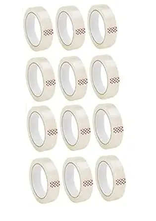 KANSUEE |Self Adhesive Transparent Cello Tape - 1 Inches Width / 50 Meter Length **PACK OF 12 Pcs - BOPP Industrial Packaging Tape for E-Commerce Box Packing, Office and Home use **