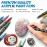 > PREMIUM MATERIAL QUALITY-(PERMANENT & SAFETY): Acrylic Paint Markers Pens are made of highly pigmented acrylic paint. Vivid, highly pigmented acrylic ink dries quickly to produce a very durable opaque and glossy finish on light and dark surfaces. The paint is non-toxic, water-resistant and UV-resistant. You can even mix the colors. Great for indoor and outdoor use.