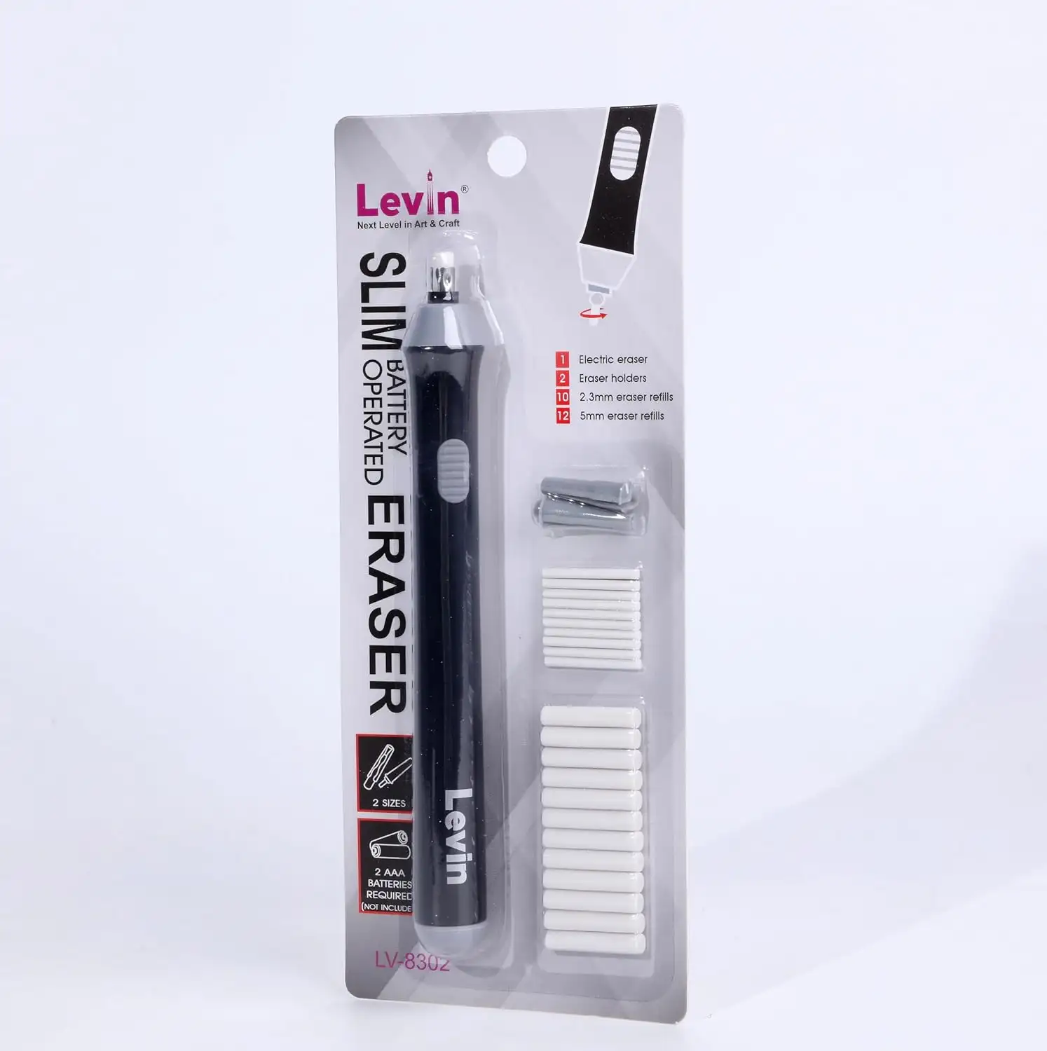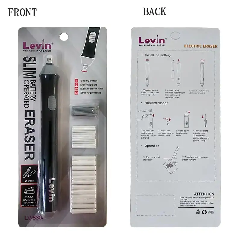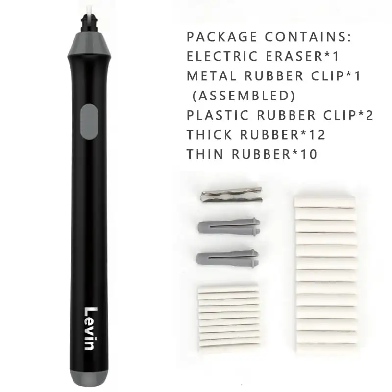 > Eletric Eraser Kit The electric eraser kit comes with 2 plastic eraser holder,12 big refills and 10 small refills.