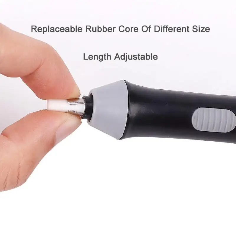 > Electric erasers are made of plastic, shape like a pen, easy to hold by children, strong and durable, erasers easy to replace
