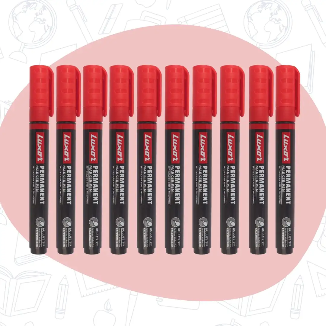 Luxor 1222 Refillable Bold Poiunt Tip Permanent Marker - Red - Box of 10