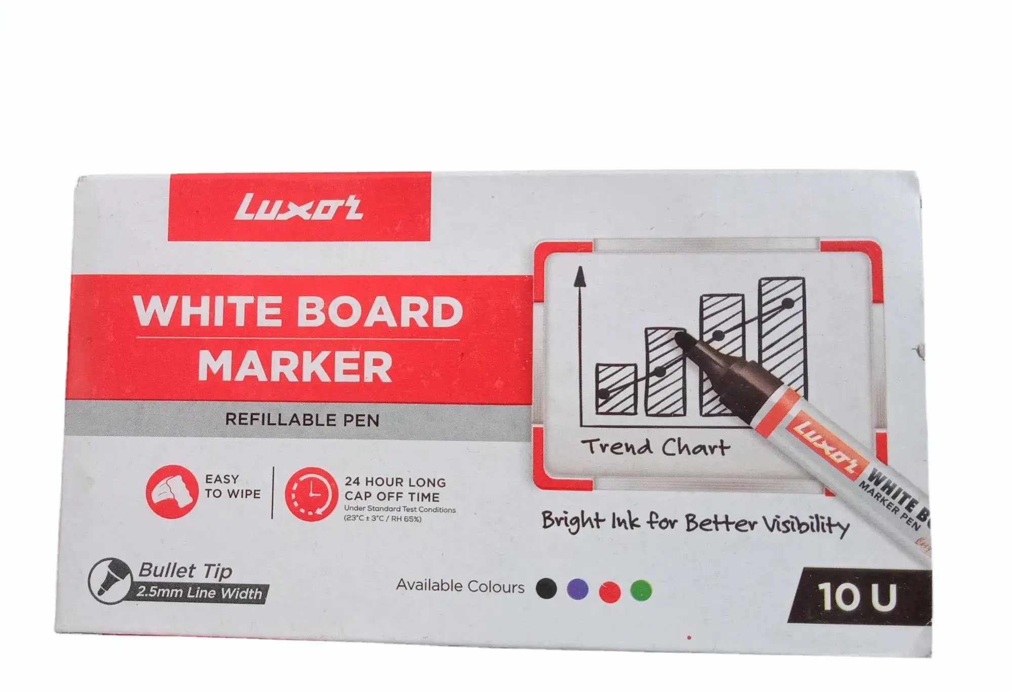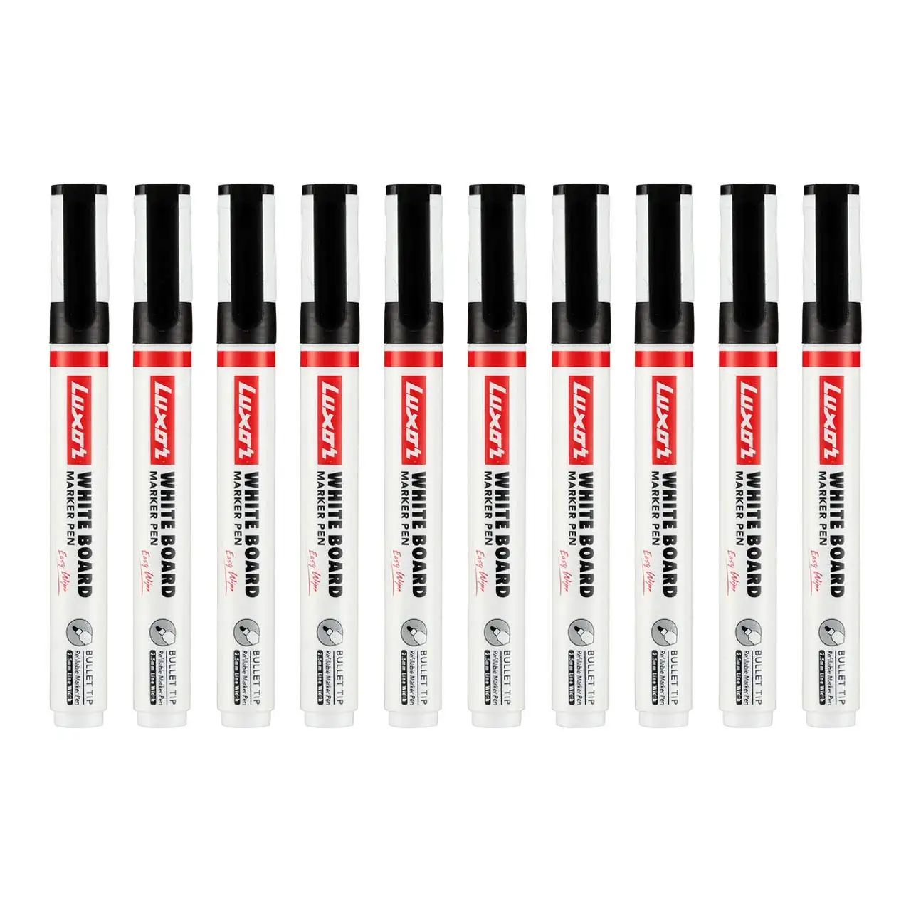 Luxor 1223 Refillable White Board Marker - Black - Box of 10