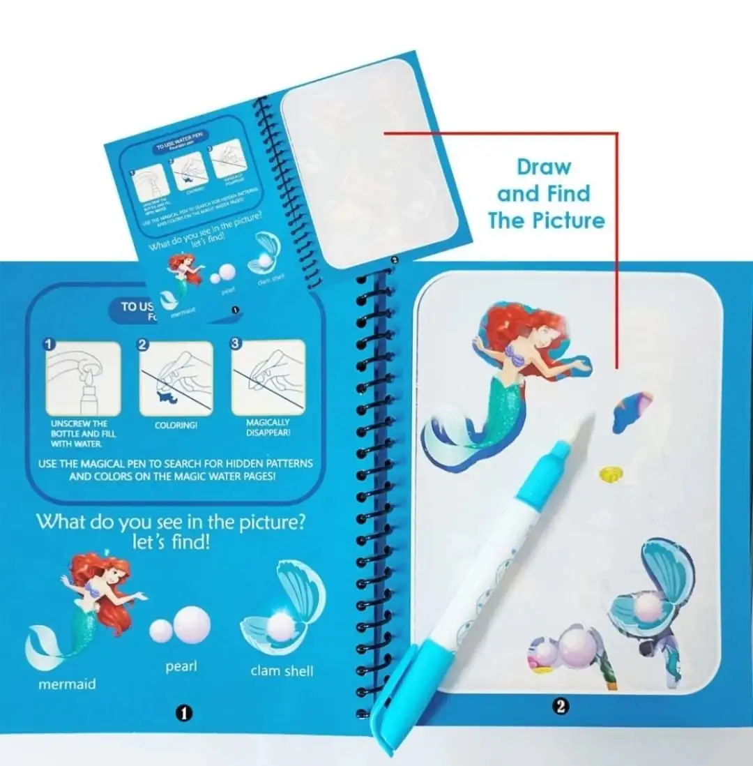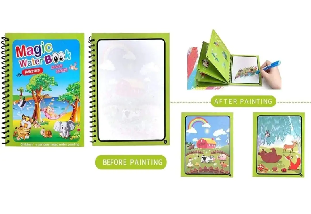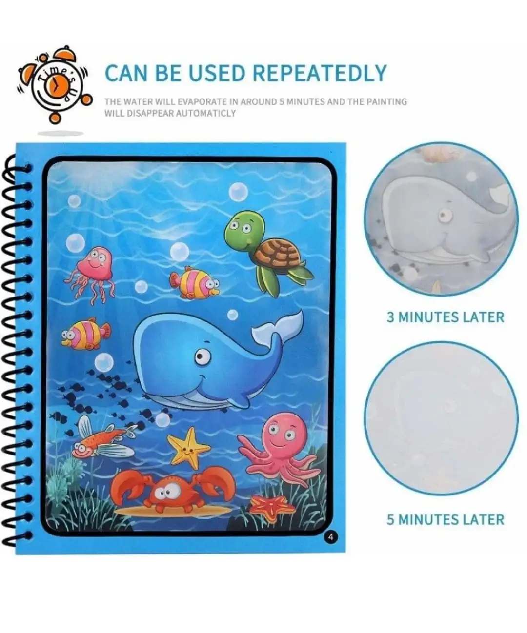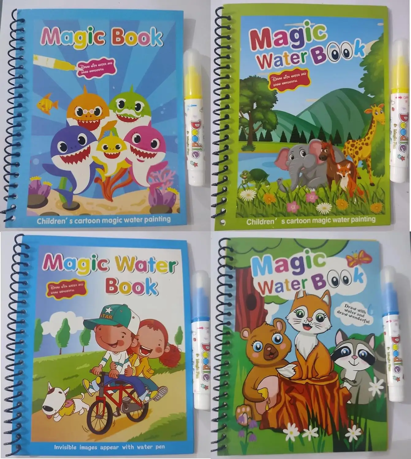 Magic Water Book with Pen | Repeat to Use | Specially for Kids |(Random Design) Children Education Drawing Pad (3 Books & 3 Pen)