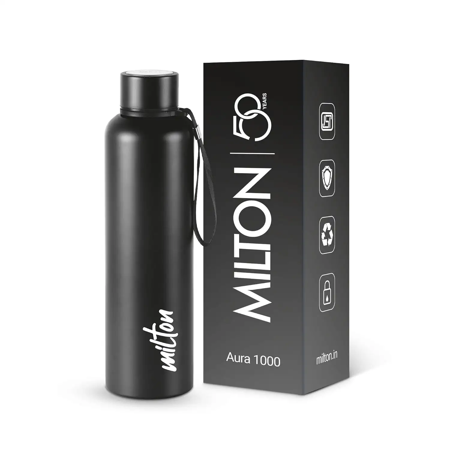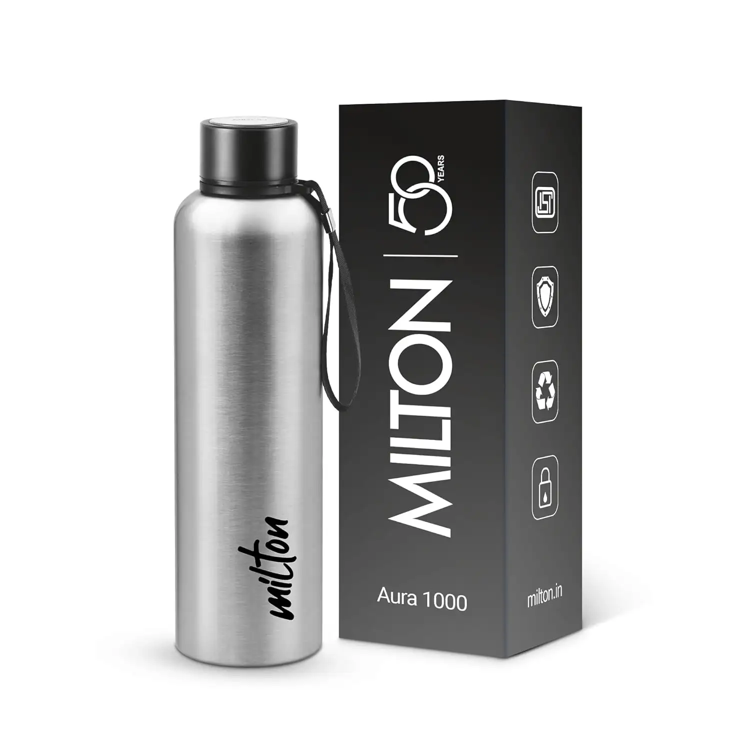 Milton Aura 1000 Thermosteel Water Bottle, 24 Hr Hot and Cold I Leak Proof Lid, ISI Certified I Vacuum Insulated I for Office, Gym, School I Pack Of 1