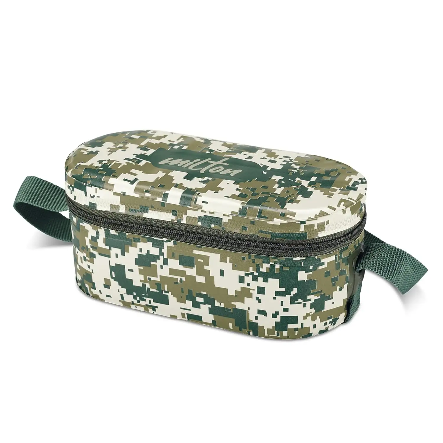 MILTON Executive Lunch Box with Steel Cutlery, 2 Inner Steel Round Containers 280ml Microwave Safe Oval Plastic Container 450ml, Insulated Bag, Leakproof Tiffin, Easy to Carry | Pack Of 1