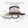 > Feature: Made from high-quality, food-safe plastic free from harmful chemicals like BPA, this lunch box features an insulated jacket and inner stainless-steel containers. The combination of these elements provides effective thermal insulation, keeping your meals at the desired temperature for longer hours and ensuring your food remains safe, healthy, and fresh.