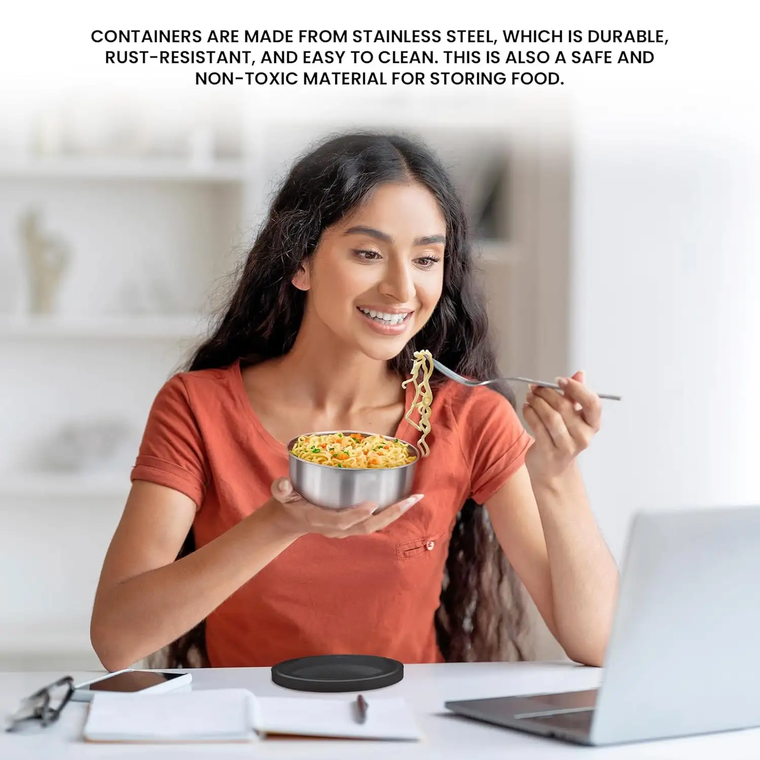> Mess-Free & Leak-Proof Containers: Leak-proof food containers to keep both dry and liquid foods hot. The microwave-safe oval containers with plastic interiors are designed for reheating in the microwave without the lid, ensuring a hassle-free experience.