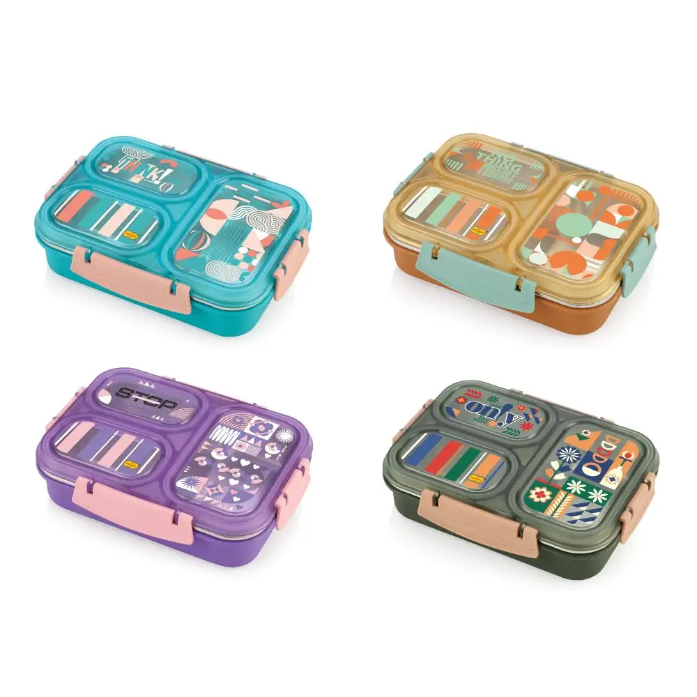 Nakoda Nero 3 Partition Stainless Steel Lunch Box for Kids | 650ml, Leak-Proof Lid, BPA Free, Airtight, Ideal for School, Office, Travel, Pack of 1