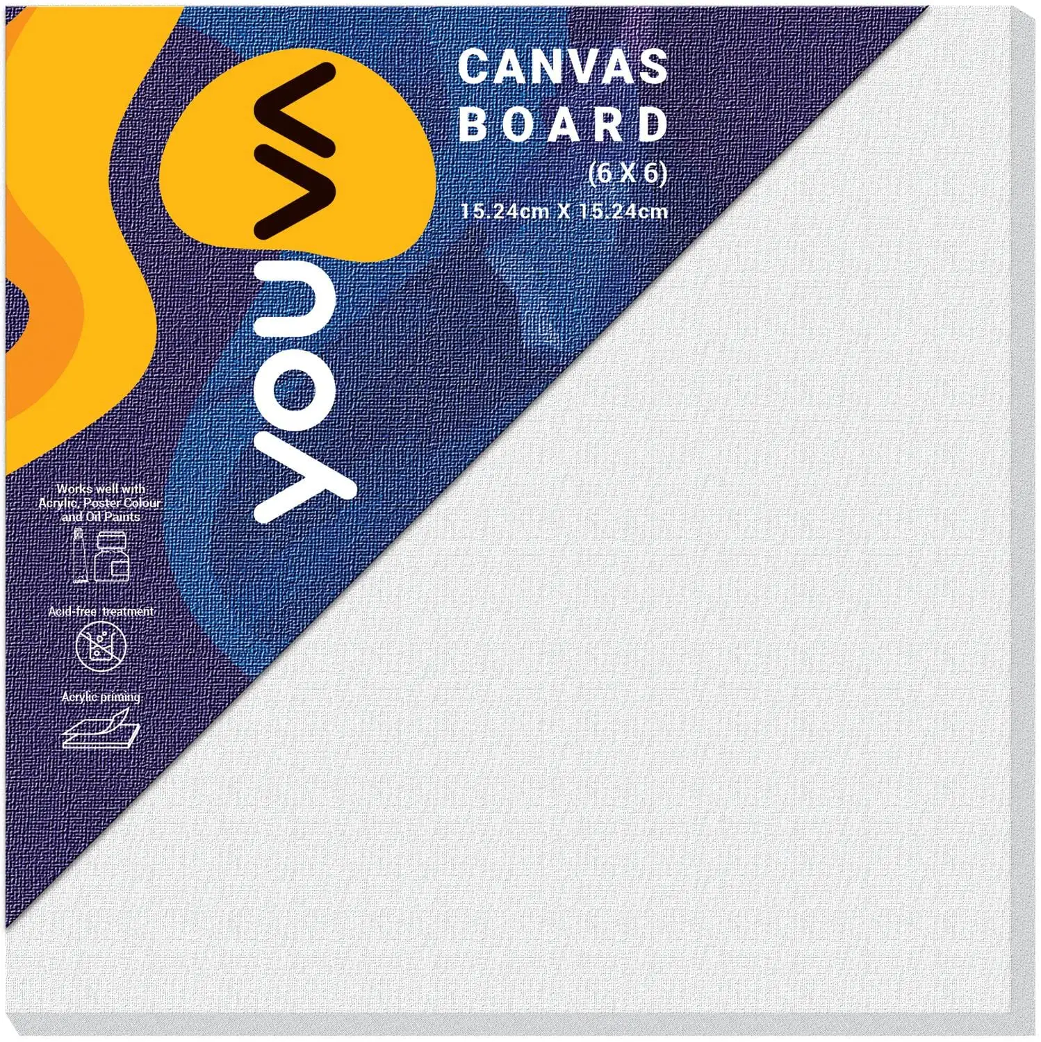 > Medium grain canvas board, size 6" x 6" (15.24 X 15.24 cm), is ideal for beginners & artists.